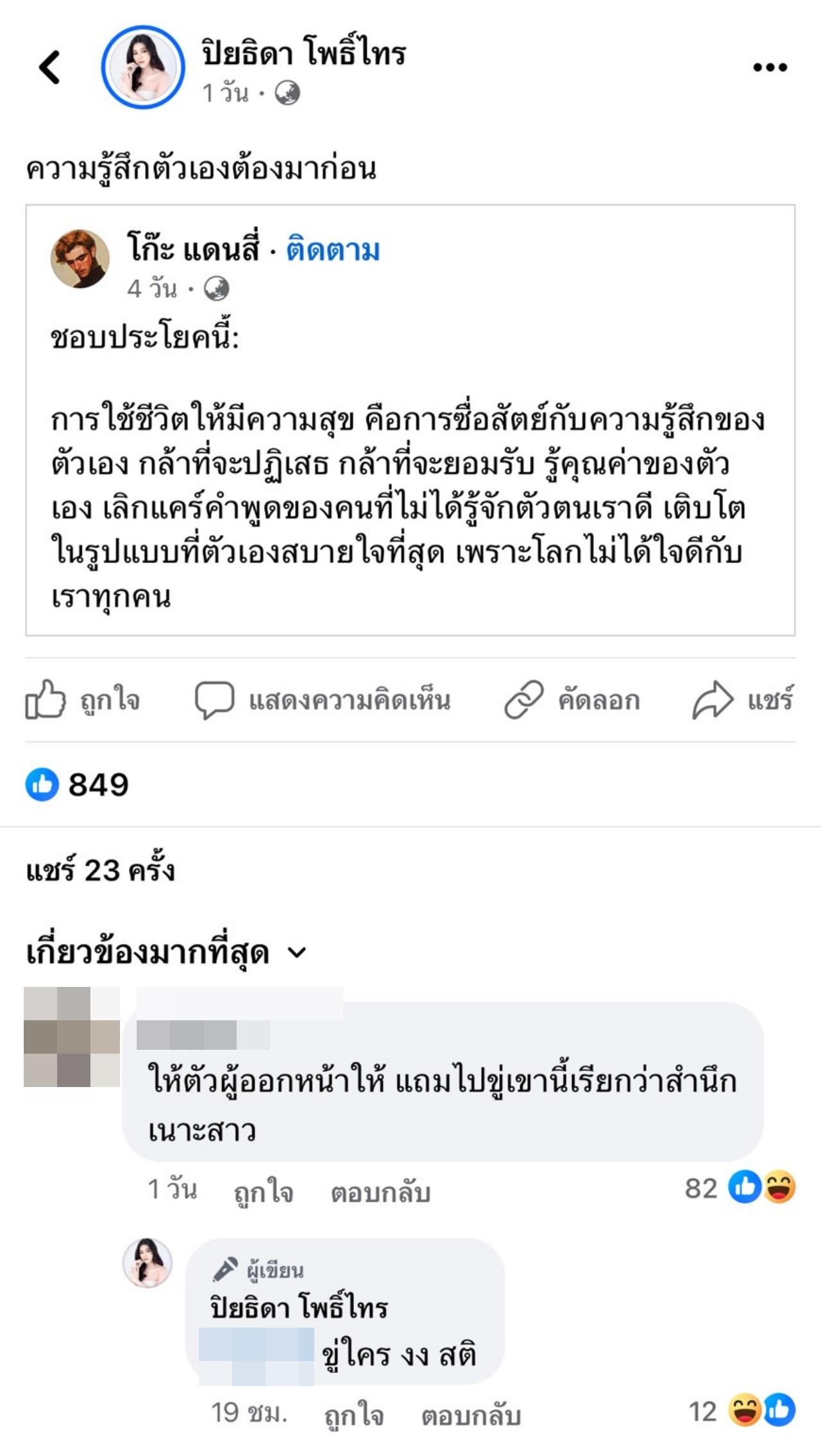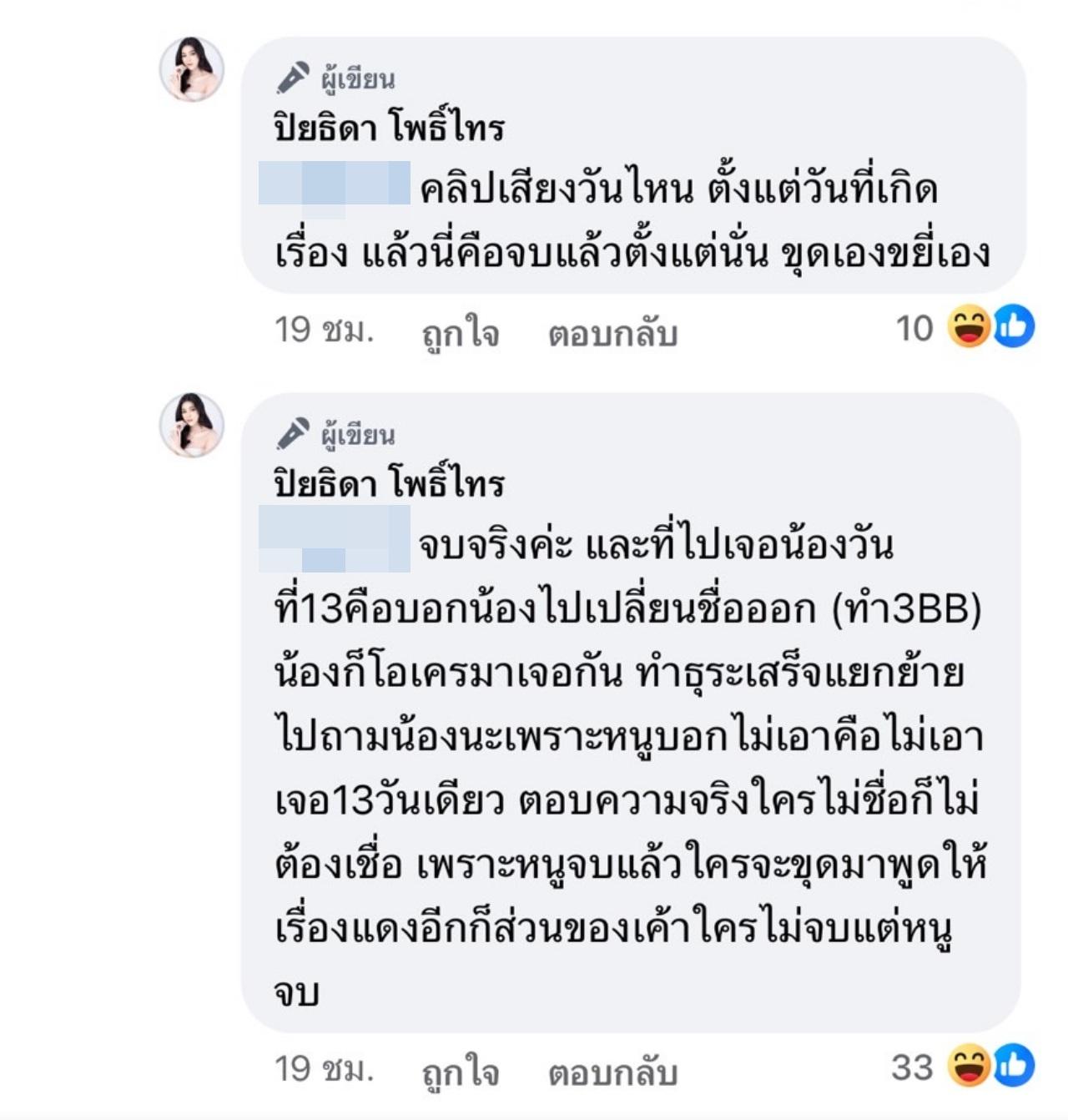 หลังจากที่ก่อนหน้านี้ มีสาวได้ออกมาโพสต์เล่าว่า รักกับแฟนมา 4 ปี มีลูกด้วยกัน 1 คน อายุ 6 เดือน แต่แล้วความรักชีวิตคู่ต้องพังลงเพราะนักร้องสาวคืนเดียว จนกลายเป็นประเด็นดราม่าร้อนสนั่นวงการลูกทุ่ง ซึ่งทุกคนพุ่งเป้าไปที่นักร้องสาว อ๋อมแอ๋ม ปิยธิดา โพธิ์ไทร ซึ่งเจ้าตัวก็ได้ออกมาโพสต์ขอโทษ ยอมรับผิดกับเรื่องที่เกิดขึ้น และขอไม่ยุ่งเกี่ยวกันอีกต่อไป