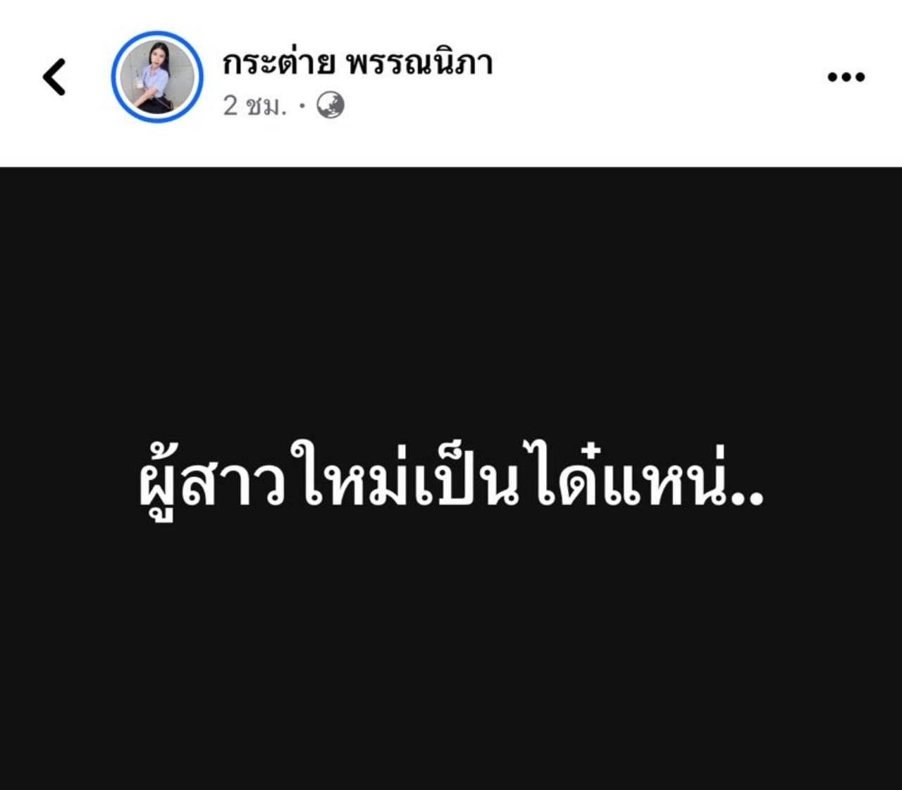ล่าสุด กระต่าย พรรณนิภา ได้โพสต์ข้อความ "ผู้สาวใหม่เป็นได๋แหน่.." งานนี้หลายคนที่ติดตามได้เข้ามาคอมเมนต์กันจำนวนมาก โดยต่างก็สงสัยว่า กระต่าย หมายถึงใคร หรือจะหมายถึงอดีตสามีเก่า อาทิ กระดีหละเนาะ..ของใหม่, คำถาม แม่นบ่555, สดุ้งเลย, จากใจผู้บ่าวเก่า, อ่านทีแรกตื่นเบิ่ด, 555 มันกะผู้ฮ่ายกว่าจ้าาาา, อีกละตี้, สุ้คนเก่าบ่อได้ดอกหนา5555555 เป็นต้น