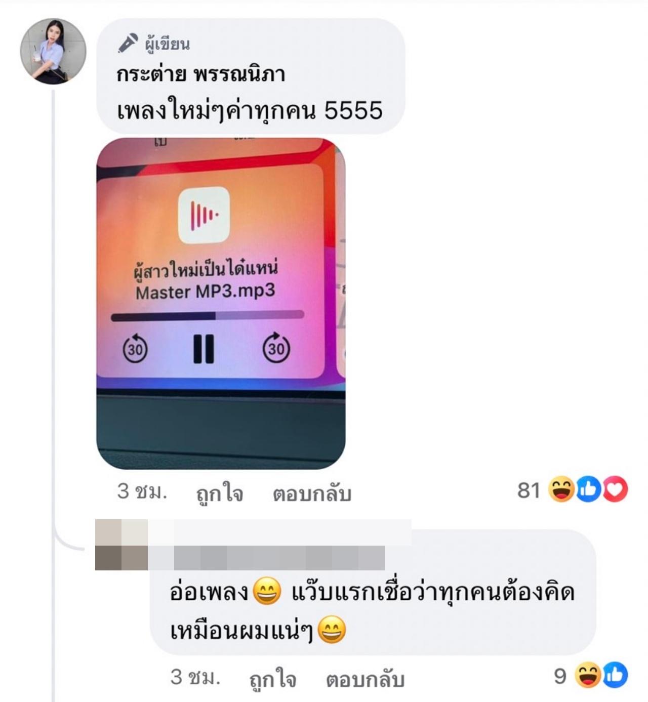 ซึ่งก่อนจะมีดราม่าไปมากกว่านี้ กระต่ายก็รีบออกมาคอมเมนต์ชี้แจงว่า "เพลงใหม่ๆ ค่าทุกคน 5555" ด้านแฟนๆ ก็บอกว่า อ่อ เพลง แวบแรกเชื่อว่าทุกคนต้องคิดเหมือนผมแน่ๆ.