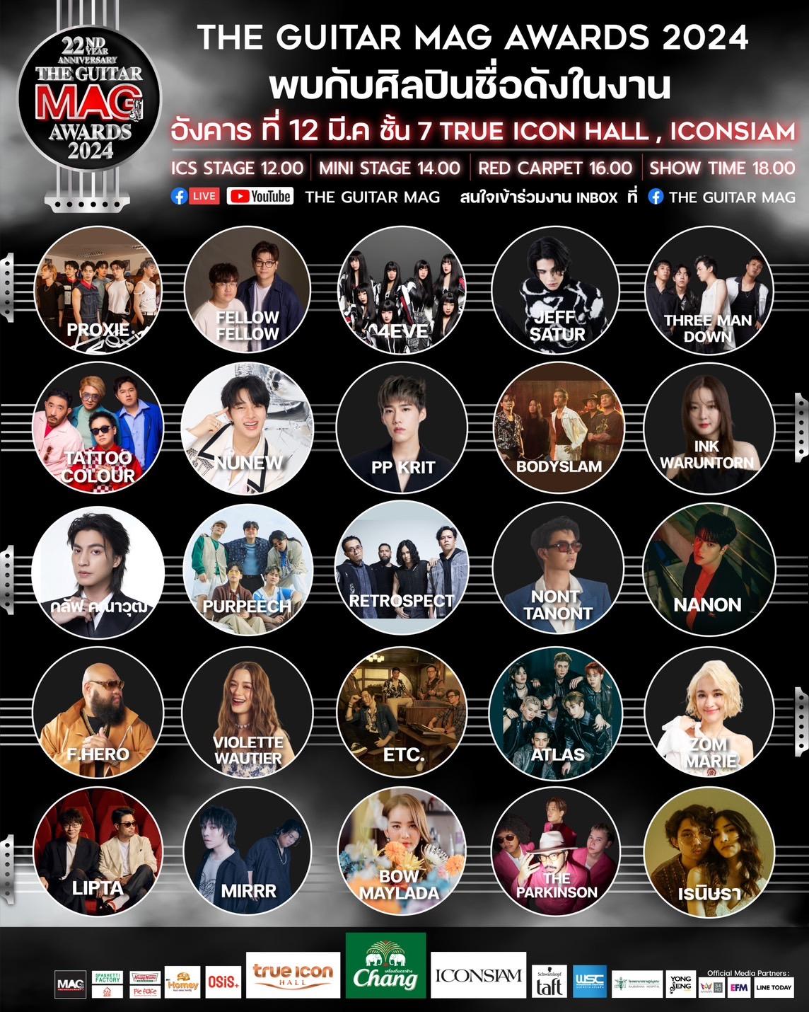 แฟนๆ เตรียมตัวให้พร้อม พบกันอีกครั้งกับ “การวมพลของคนดนตรีที่ยิ่งใหญ่และอลังการที่สุด” ในงาน THE GUITAR MAG AWARDS : REAL AWARDS FOR REAL ARTIST “งานประกาศรางวัลทางดนตรีที่ยิ่งใหญ่ที่สุดในเมืองไทย” งานเดียวที่รวมศิลปิน และคนดนตรีทั้งเบื้องหน้า และเบื้องหลังมารวมตัวกันมากที่สุดในเมืองไทย! จากทุกค่ายเพลง ทุกแนวดนตรี ซึ่งได้จัดงานอย่างต่อเนื่องมาเป็นปีที่ 13 พร้อมร่วมฉลองครบรอบปีที่ 22 ของ นิตยสาร THE GUITAR MAG ในธีม “MUSIC MOUNAMENT : อนุสาวรีย์แห่งเสียงเพลง” งานจัดขึ้นในวันอังคารที่ 12 มีนาคม 2567 ณ TRUE ICON HALL ชั้น 7 @ ICONSIAM