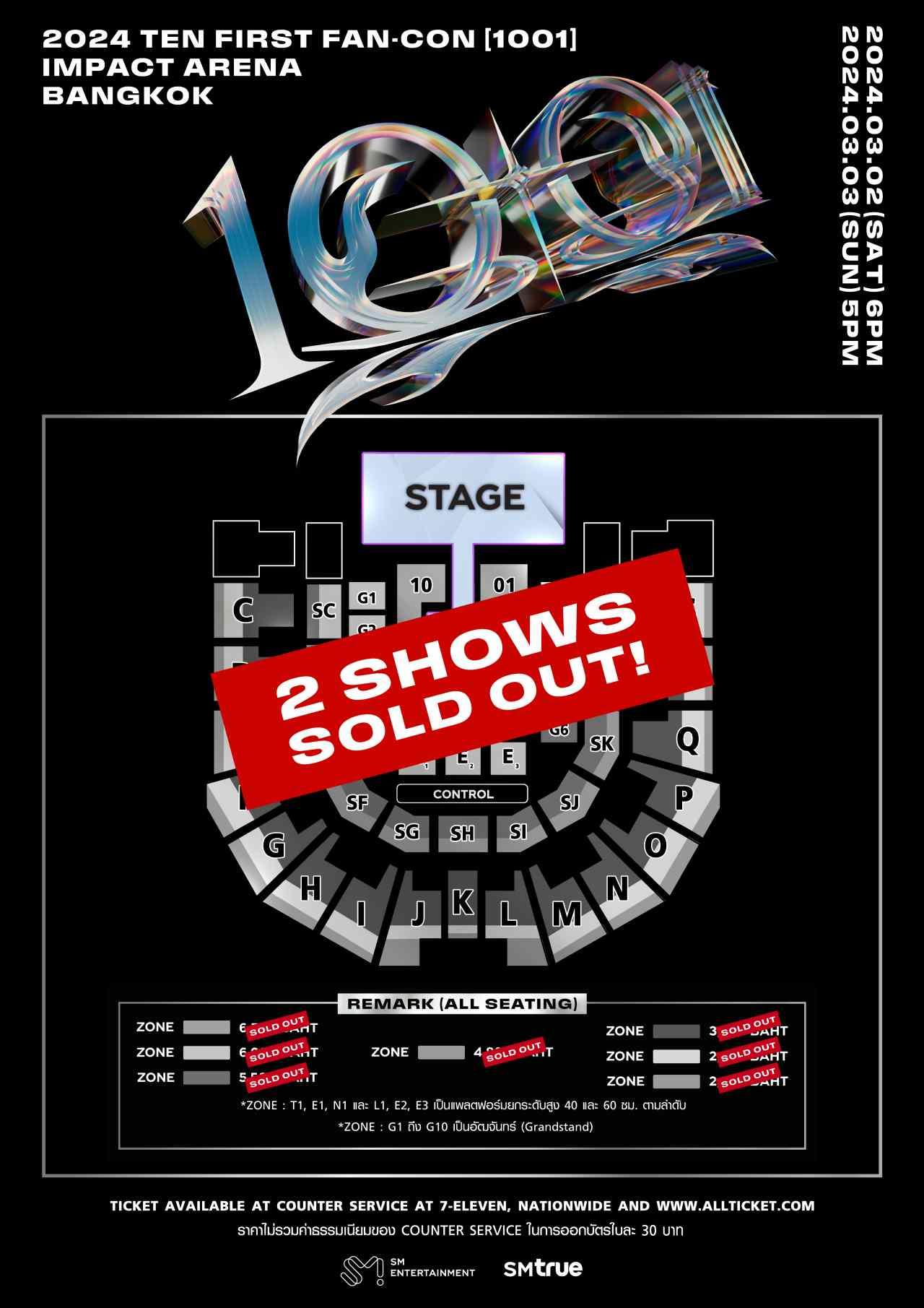 อิมแพ็คของจริง! สำหรับ TEN (เตนล์) หรือ ชิตพล ลี้ชัยพรกุล วง NCT (เอ็นซีที) และ WayV (เวย์วี) ที่กำลังเดินหน้าโปรโมตกิจกรรมในฐานะศิลปินเดี่ยวอย่างเต็มที่ หลังจากประสบความสำเร็จกับแฟนคอนเดี่ยว ณ กรุงโซล เกาหลีใต้ ประเทศที่เป็นดั่งความฝันของเขา เมื่อวันที่ 16-17 กุมภาพันธ์ 2567 ซึ่งจุดหมายต่อไปที่ ‘TEN’ (เตนล์) ปักหมุดเพื่อเปิดฉากเอเชียทัวร์ คือ ประเทศไทยบ้านเกิด กับ ‘2024 TEN FIRST FAN-CON [1001] IN BANGKOK’ (ทูเธาซันด์ทเวนตี้โฟร์ เตนล์ เฟิสต์ แฟน-คอน [วันซีโร่ซีโร่วัน] อิน แบงค็อก) ในวันเสาร์ที่ 2 และวันอาทิตย์ที่ 3 มีนาคม 2567 ณ อิมแพ็ค อารีน่า โดยล่าสุดทางค่ายและผู้จัดอย่าง SM True (เอสเอ็ม ทรู) ได้ประกาศว่า บัตรถูกจำหน่ายหมด (SOLD OUT) เป็นที่เรียบร้อย ยิ่งไปกว่านั้น ‘TEN’ (เตนล์) ได้สร้างสถิติใหม่อันน่าภาคภูมิใจ กับการคว้าตำแหน่งศิลปินชายเดี่ยวคนแรกของค่าย SM Entertainment (เอสเอ็ม เอนเตอร์เทนเม้นท์) ที่สามารถจัดแฟนคอนเสิร์ตเดี่ยว ณ อิมแพ็ค อารีน่า และบัตรทั้ง 2 รอบการแสดง จำหน่ายหมดเกลี้ยงทุกที่นั่ง