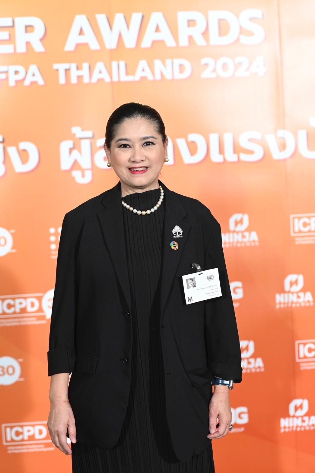 ในงานแถลงข่าวเปิดตัวกิจกรรม “HER AWARDS UNFPA THAILAND 2024 ประชากรหญิง ผู้สร้างแรงบันดาลใจ” ซึ่งจัดขึ้นเป็นปีแรก เพื่อมอบรางวัลให้กับบุคคลหรือนิติบุคคลจากหลากสาขาอาชีพทั่วประเทศ จำนวน 100 คน ที่ทำคุณประโยชน์เพื่อผู้หญิง ซึ่งเป็นอีกหนึ่งโปรเจกต์ใหญ่ในวาระครบรอบ 30 ปี การประชุมนานาชาติว่าด้วยเรื่องประชากรและการพัฒนา (International Conference on Population and Development : ICPD)
