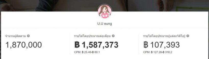 - รายได้โดยประมาณต่อเดือนอยู่ที่ 1,587,373 บาท (CPM: 25.46 - 89.1 บาท)