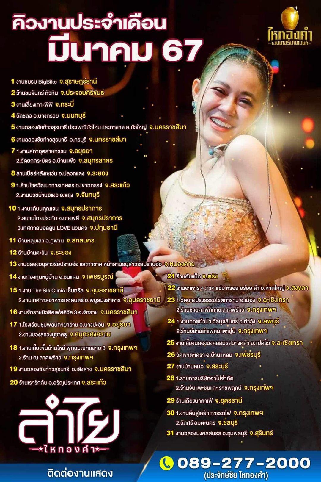 ทำเอาแฟนๆ ถึงกับเป็นงง เมื่อนักร้องสาวสุดฮอต ลำไย ไหทองคำ เปิดคิวงานเดือนมีนาคม ที่มีทั้งหมด 31 วัน ตารางแน่นทุกวัน แถมบางวันมีวิ่ง 2-3 งานอีกด้วย