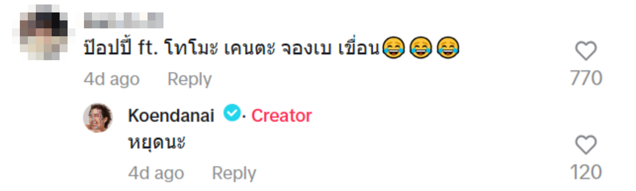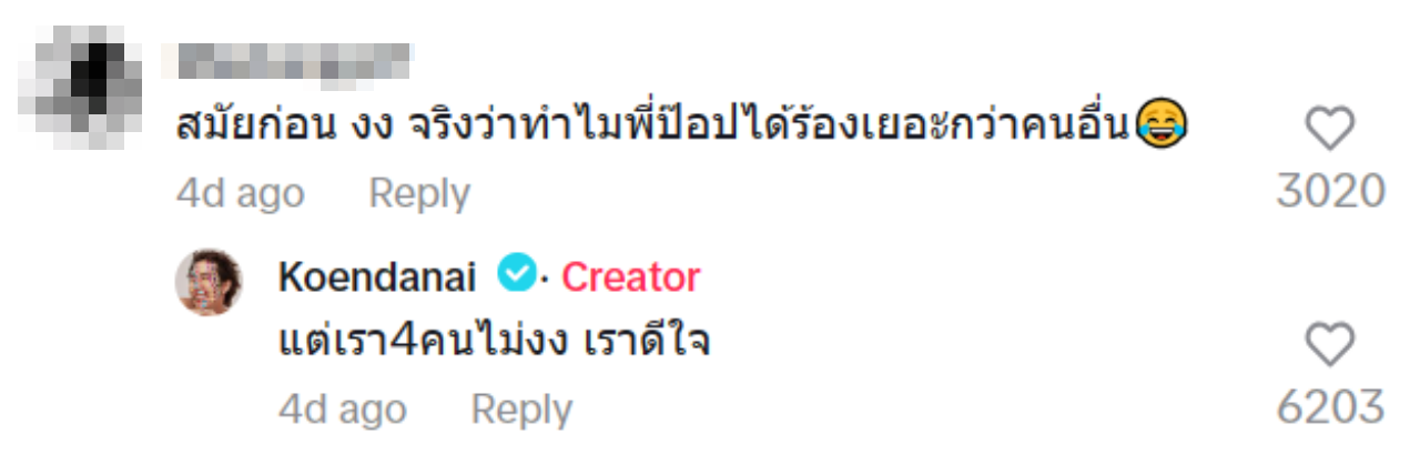 งานนี้ แฟนๆ ต่างเข้ามาคอมเมนต์แซว บ้างก็ว่า "สมัยก่อน งง จริงว่าทำไมพี่ป๊อปได้ร้องเยอะกว่าคนอื่น, ป๊อปปี้ ft. โทโมะ เคนตะ จองเบ เขื่อน, แล้วสมัยก่อนคิดนะ ว่าทำไมให้ซีนไม่เท่ากัน"