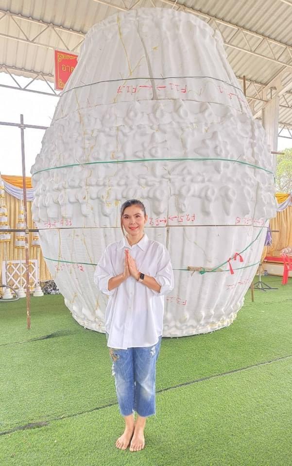 ซึ่ง ฝน ธนสุนทร มีโอกาสถ่ายรูปกับตะโพนยักษ์ที่วัดกำลังสร้างขึ้น งานนี้ทำเอาชาวเน็ตและแฟนๆ ที่ตาดีหลายคนมองเห็นตัวเลขที่อยู่บนตะโพน และต่างตีเป็นเลขเด็ด เพื่อหวังซื้อลอตเตอรี่ งวดวันที่ 16 มี.ค. ที่กำลังจะมาถึงในอีกไม่กี่วันนี้แล้ว