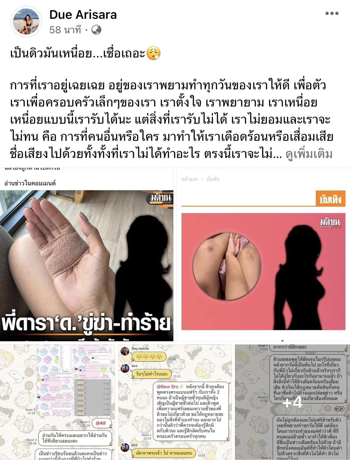 จากประเด็นที่มีสาวออกมาโพสต์ข้อความแฉ โดนพี่ชายของดาราดัง อักษรย่อ ‘ด’ ทำร้ายร่างกาย-ขู่ฆ่า หนีแล้วก็ยังตามมาดักรอ จนสาว ดิว อริสรา ได้ออกมาชี้แจงถึงประเด็นดังกล่าวหลังถูกโยง จนทำชื่อเสียงเสื่อมเสีย