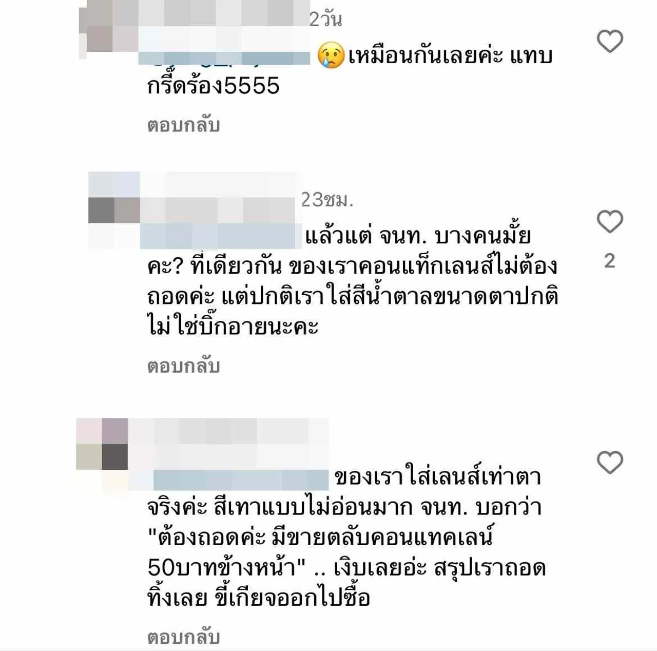 แล้วแต่ จนท. บางคนมั้ยคะ? ที่เดียวกัน ของเราคอนแท็กเลนส์ไม่ต้องถอดค่ะ แต่ปกติเราใส่สีน้ำตาลขนาดตาปกติ ไม่ใช่บิ๊กอายนะคะ, ของเราใส่เลนส์เท่าตาจริงค่ะ สีเทาแบบไม่อ่อนมาก จนท. บอกว่า "ต้องถอดค่ะ มีขายตลับคอนแทคเลน์ 50 บาทข้างหน้า" .. เงิบเลยอ่ะ สรุปเราถอดทิ้งเลย ขี้เกียจออกไปซื้อ, เราไปทำก็ถอดออกหมดเลยค่ะ..ตัวจิงกับในรูปนี้ต่างกันมาก อยากจะทำใหม่เลย"