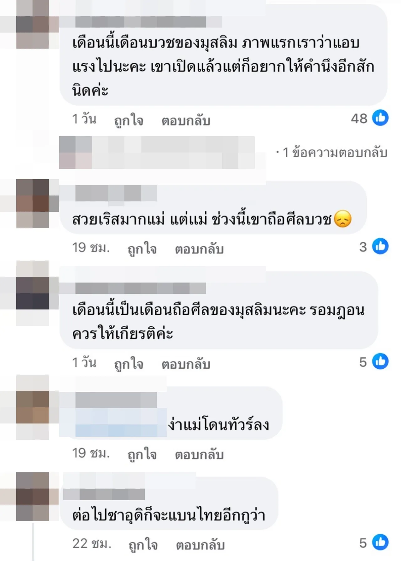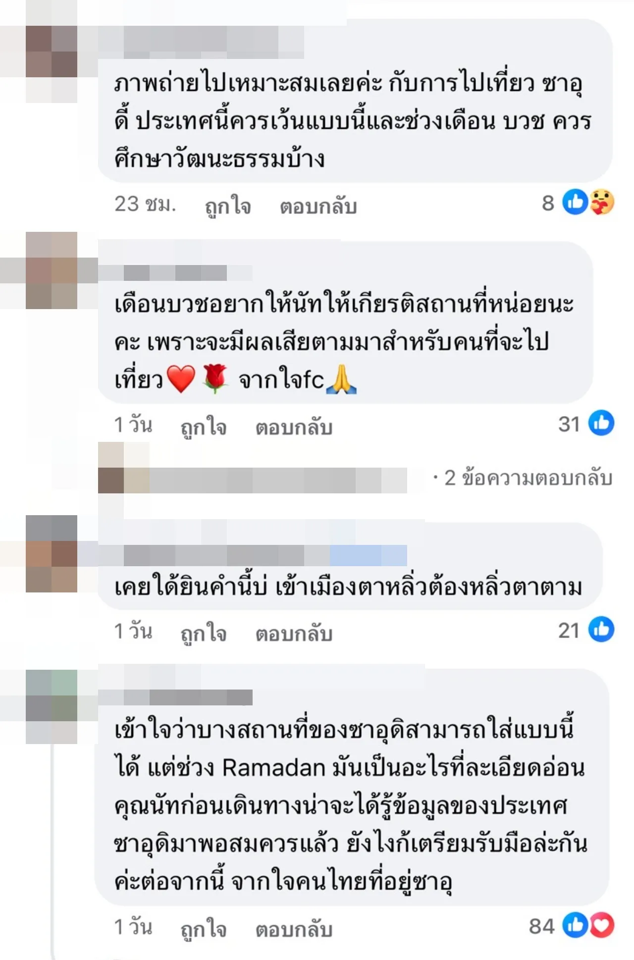 ซึ่งส่วนใหญ่มองว่าไม่เหมาะที่ใส่บิกินีในช่วงนี้ เพราะเป็นเดือนรอมฎอน และประเทศซาอุดีอาระเบียเป็นดินแดนอันศักดิ์สิทธิ์ของชาวมุสลิมที่เคร่งครัดเรื่องศาสนาเป็นอย่างมาก.