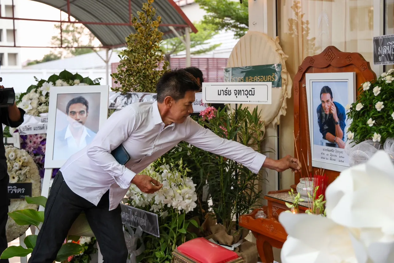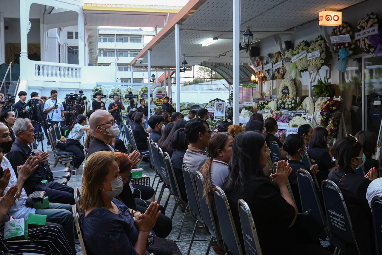 ซึ่งในวันนี้ มีแฟนคลับนำรูปภาพวาดเหมือน เมฆ วินัย มามอบให้กับครอบครัว จำนวน 2 ภาพด้วยกัน และในเวลา 18.00 น. ก็เริ่มพิธีสวดพระอภิธรรมตามกำหนดการที่แจ้งเอาไว้ และในวันจันทร์ที่ 25 จะมีพิธีฌาปนกิจในเวลา 17.00 น.