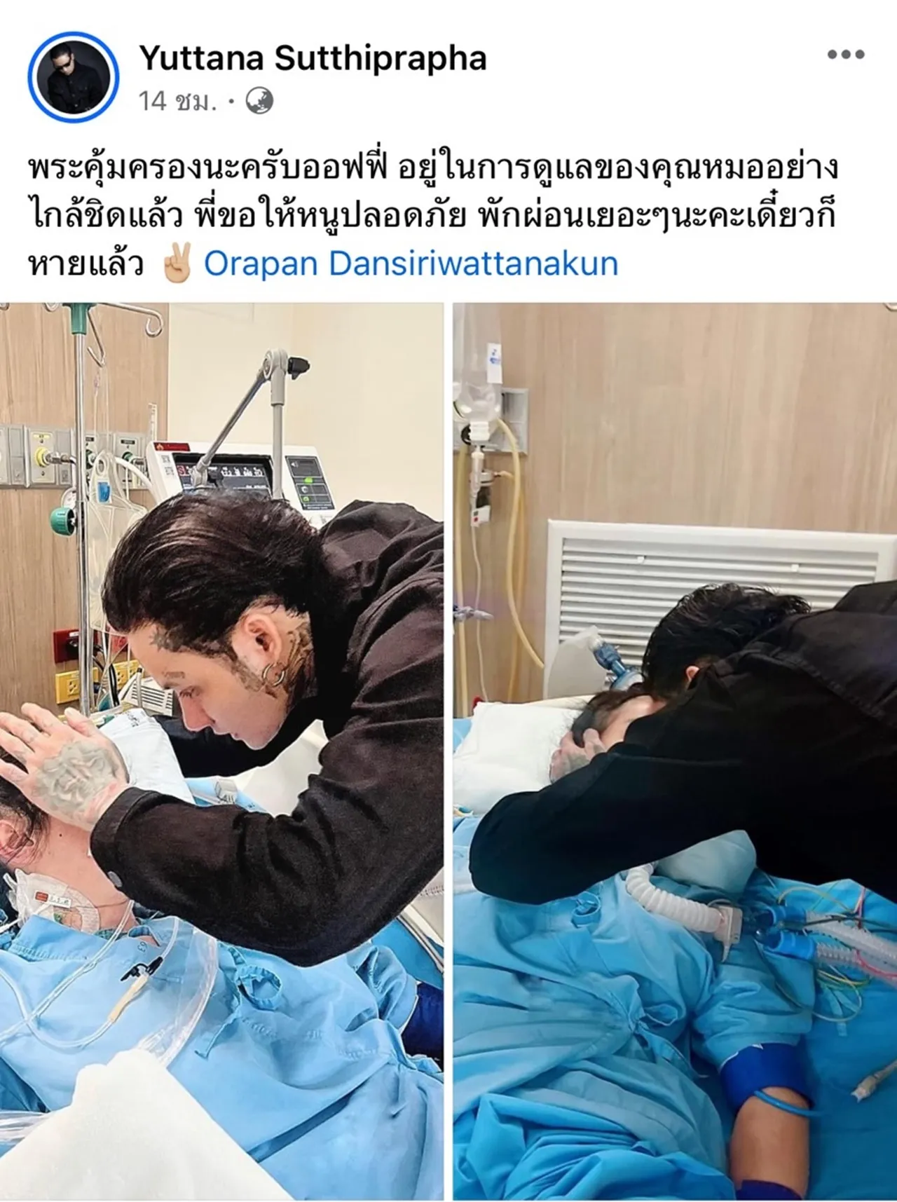และล่าสุดคนใกล้ชิดได้โพสต์ข้อความอัปเดตอาการของ ออฟฟี่ ในตอนนี้ให้ทราบว่า ออฟฟี่เข้ารับการผ่าตัดสมองตั้งแต่วันที่ 21 มี.ค. และอาการล่าสุดร่างกายฝั่งขวามีการตอบสนองได้ แต่สมองยังบวม ต้องอยู่ในการดูแลของแพทย์อย่างใกล้ชิด