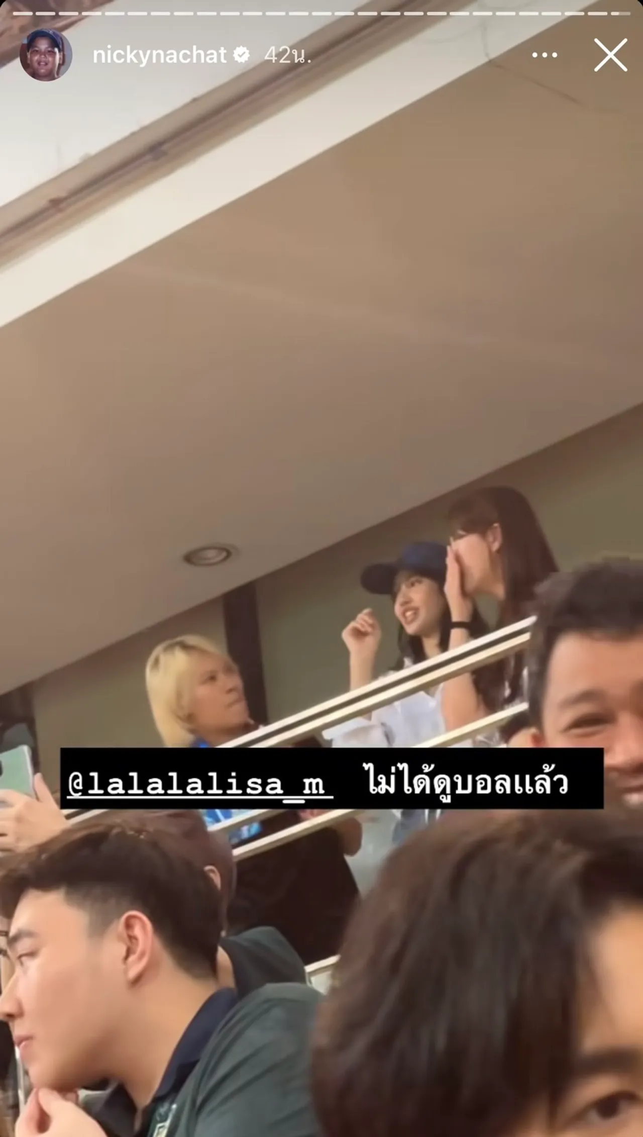 โดยในไอจีสตอรี่ของ นิกกี้ ณฉัตร และเฟซบุ๊กของ ป๋าเต็ด ยุทธนา ได้โพสต์รูปและคลิปว่า ลิซ่า นั้นได้มานั่งเชียร์ร่วมส่งกำลังใจเชียร์ทีมชาติไทยสู้ศึกกับทีมชาติเกาหลีใต้ในครั้งนี้ด้วย เป็นอีกหนึ่งสีสันของการแข่งขันฟุตบอลในครั้งนี้จริงๆ