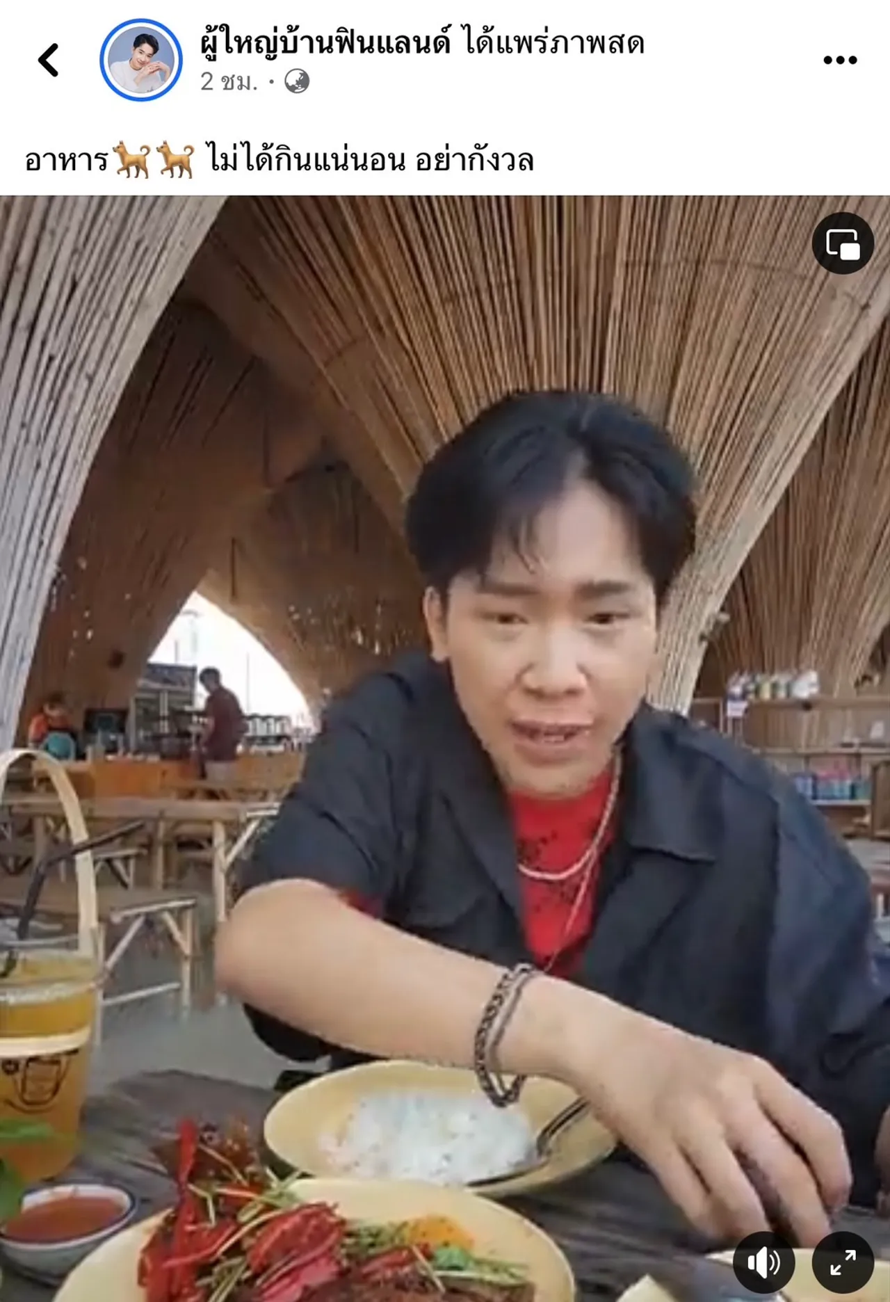 ล่าสุด หนุ่มบิ๊ก หรือ ผู้ใหญ่บ้านฟินแลนด์ ได้เคลื่อนไหวแล้ว ด้วยการไลฟ์สดพร้อมแคปชั่นระบุว่า "อาหาร (อีโมจิสุนัข 2 ตัว) ไม่ได้กินแน่นอน อย่ากังวล" และอีกโพสต์ระบุว่า "อย่าหลงเชื่อ ในสิ่งที่ไม่ใช่ความจริง มโนจิต"