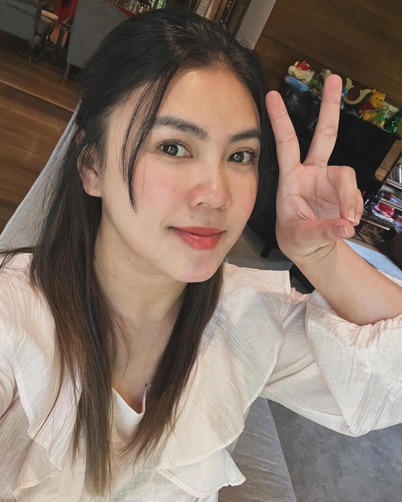 "ขออภัยในความผมหงอกนิดนึงนะคะ เพราะว่ายังไม่มีเวลาไปย้อมผมเลย (ยิ้ม) ต้องออกตัว 2 เรื่อง คือ 1.เรื่องผมใช่ไหม 2.เรื่องอวบอั๋นนิดนึง เพราะว่าทำลูก คือต้องกินฮอร์โมน ฉีด ปรับ อะไรแบบเยอะมาก ก็จะอวบๆ นิดนึง