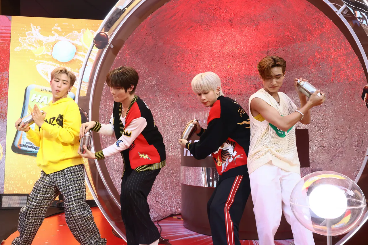 4 หนุ่มวง DICE “เจย์-เฟรม-อาโป-มิน” ศิลปินบอยกรุ๊ปน้องใหม่สุดฮอต มาร่วมสาดความเฟรชดับอุณหภูมิร้อนกับมินิคอนเสิร์ตสุดเอ็กซ์คลูซีฟ พร้อมครีเอตเครื่องดื่มสุดอินสไปร์สดชื่นเย็นถึงใจที่คนรุ่นใหม่ต้องลอง ณ สยามสแควร์วัน