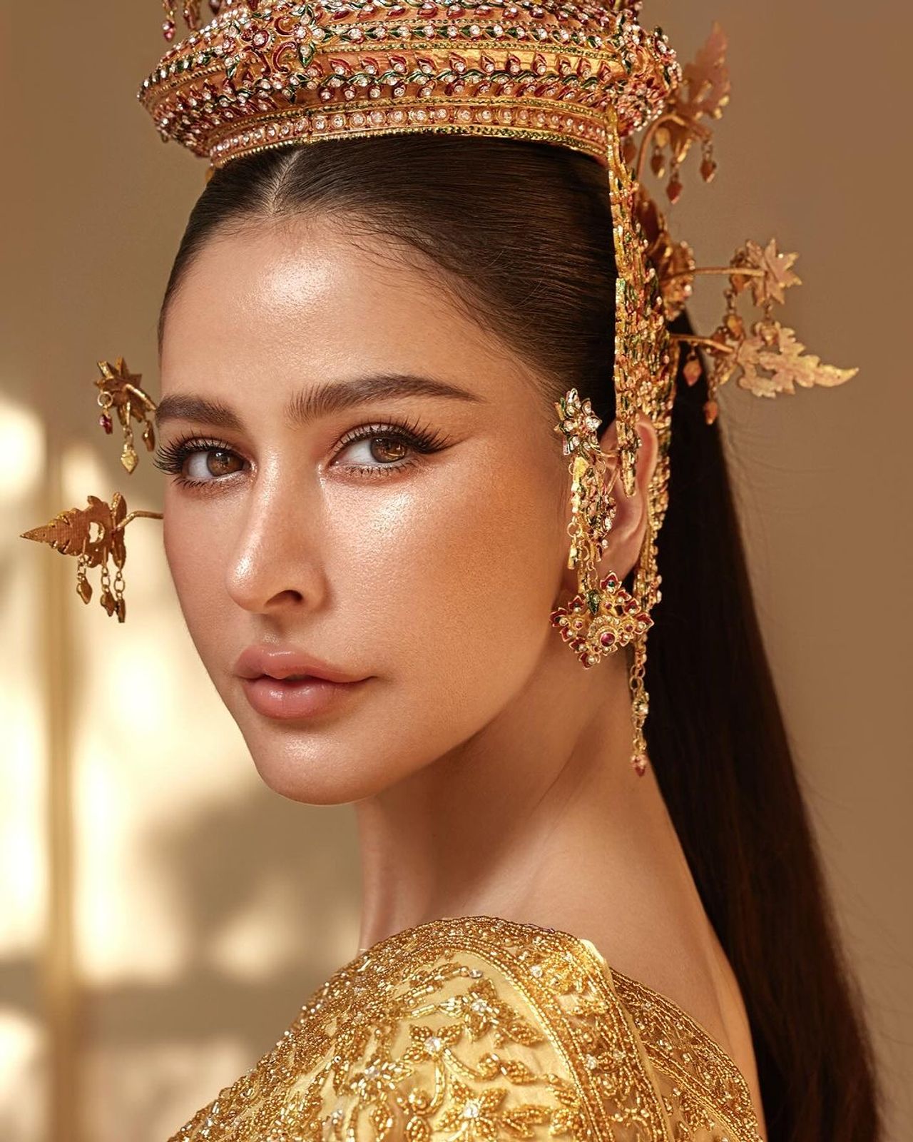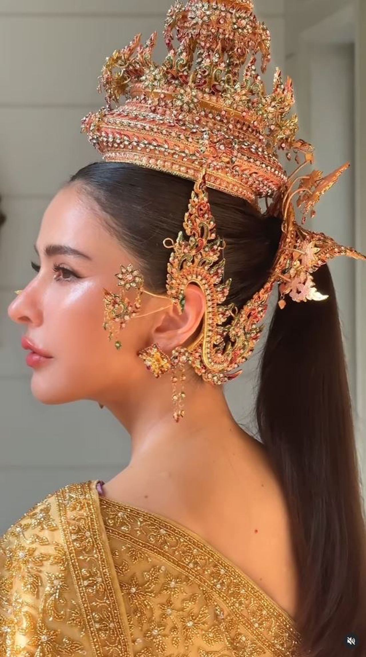 สวยฉ่ำ! รับเทศกาลสงกรานต์ กันเลยจ้า เมื่อสาวสวยระดับนางเอก "ศรีริต้า เจนเซ่น ณรงค์เดช" ศรีภรรยาคนเก่ง "กรณ์ ณรงค์เดช" ออกมาแปลงโฉมเป็นนางสงกรานต์มโหธรเทวี ใส่ชุดไทยสีทองเหลืองอร่าม มือขวาถือจักร มือซ้ายถือตรีศูล