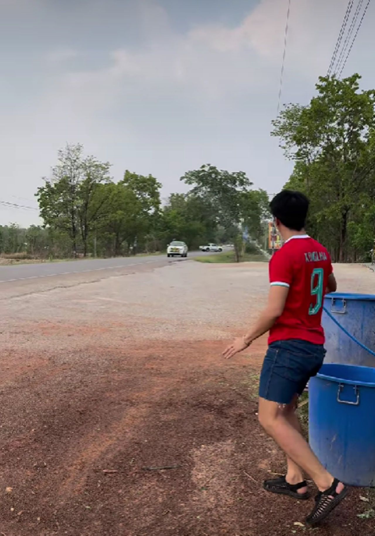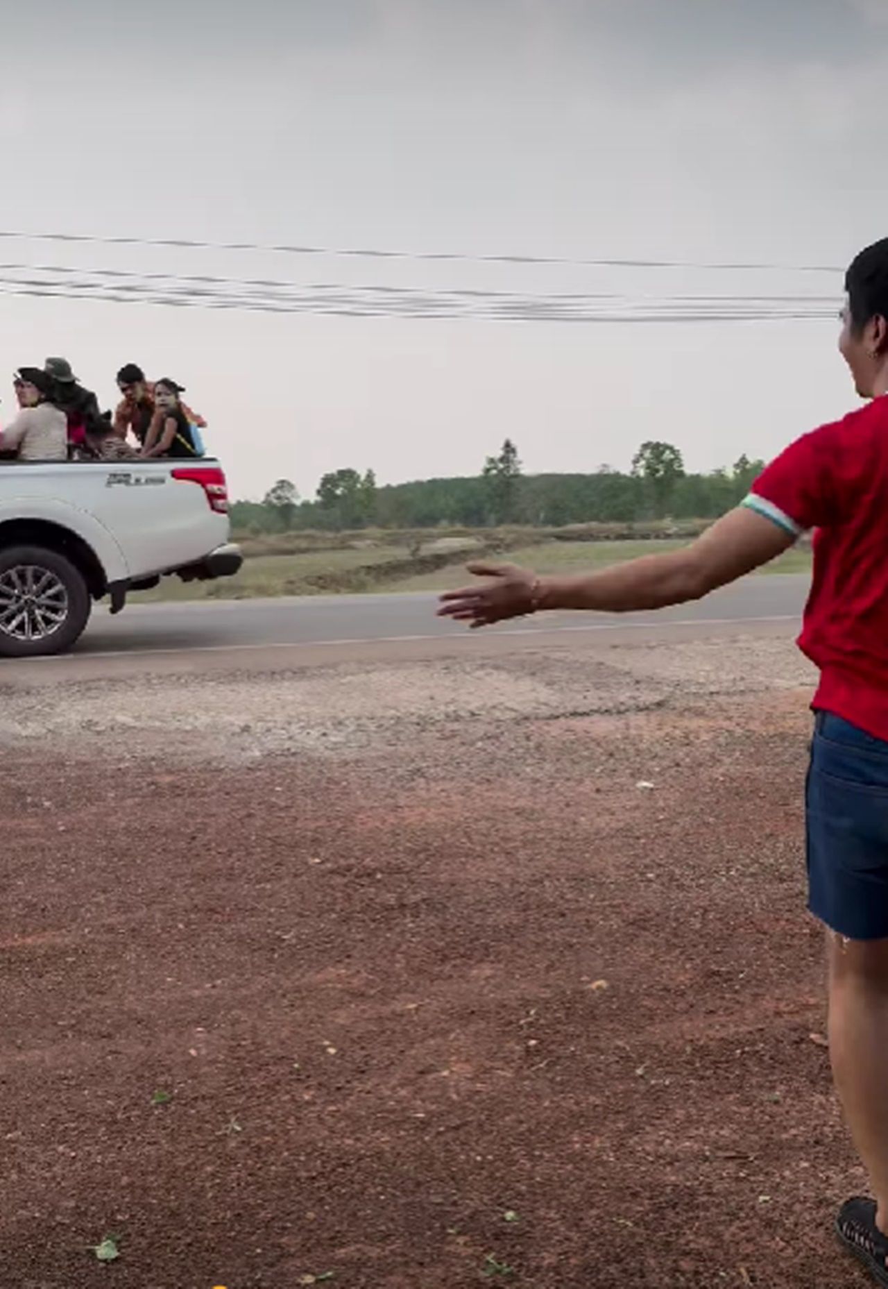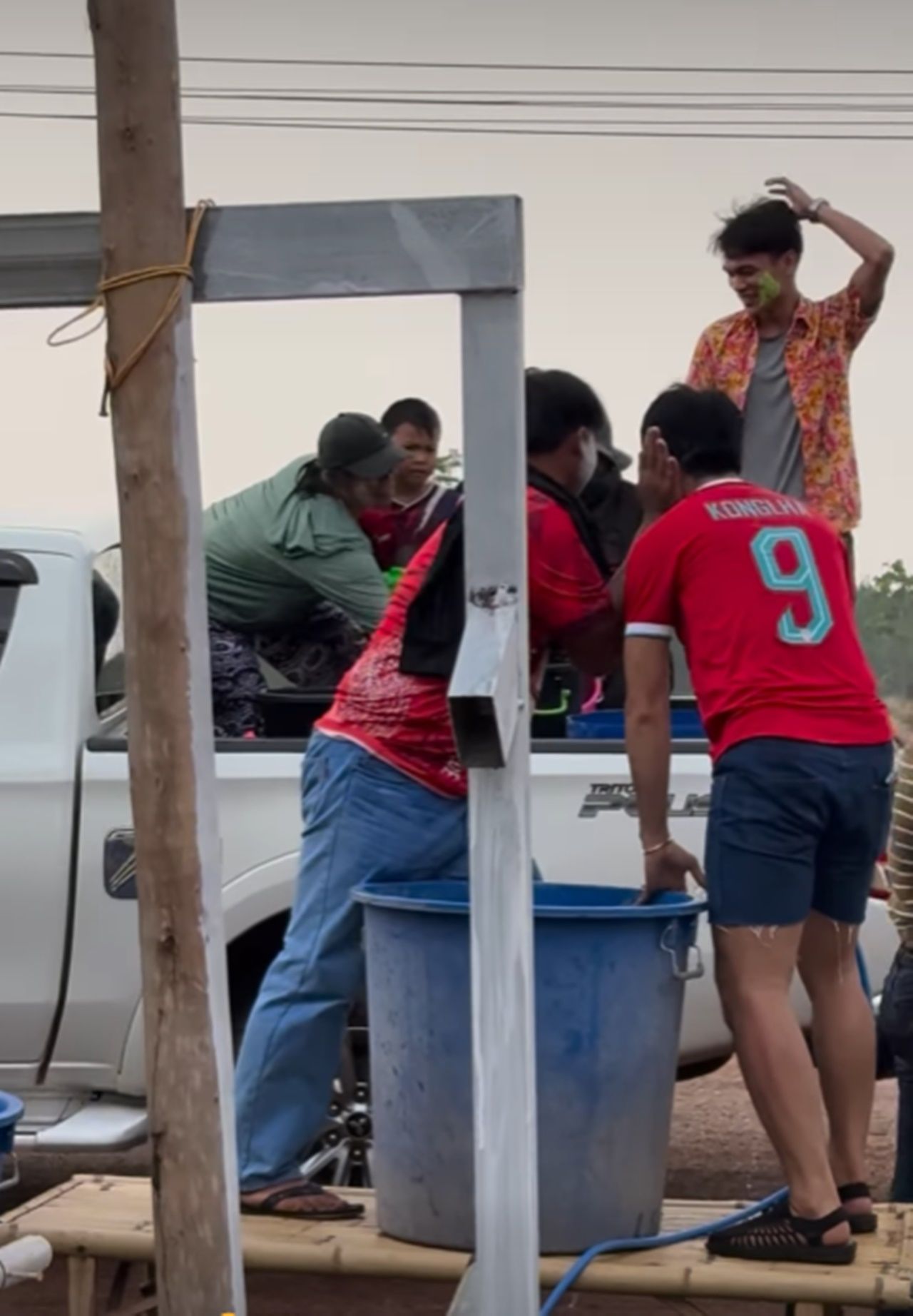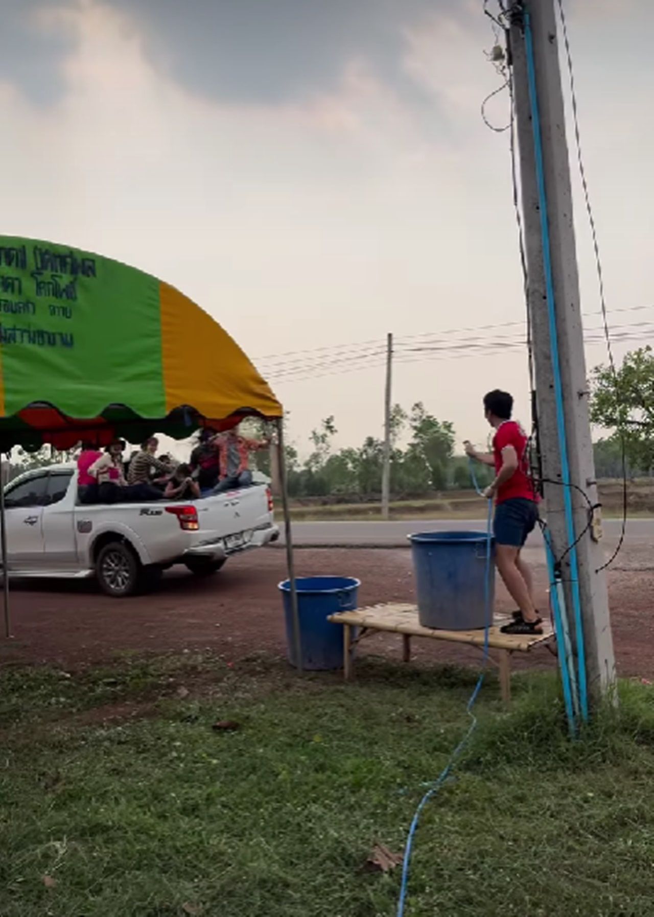 โดย เบลล์ ขนิษฐา ภรรยาของ ก้อง ห้วยไร่ ได้โพสต์คลิปของสามีขณะตั้งป้อมรอเล่นน้ำสงกรานต์อยู่หน้าร้าน แต่กลับไม่มีรถที่เล่นน้ำผ่านมาสักคัน ทำได้แต่ยืนฉีดน้ำเล่นคนเดียวแบบเหงาๆ แต่ทันใดนั้นได้มีรถกระบะที่มีคนเต็มท้ายพร้อมถังน้ำเล่นสงกรานต์และอุปกรณ์ครบมือผ่านมา ตอนแรกขับผ่านไปอย่างรวดเร็ว ทันใดนั้นคนท้ายกระบะหลังตะโกนดังมาแต่ไกล พร้อมกับบอกให้คนขับถอยรถกลับมา