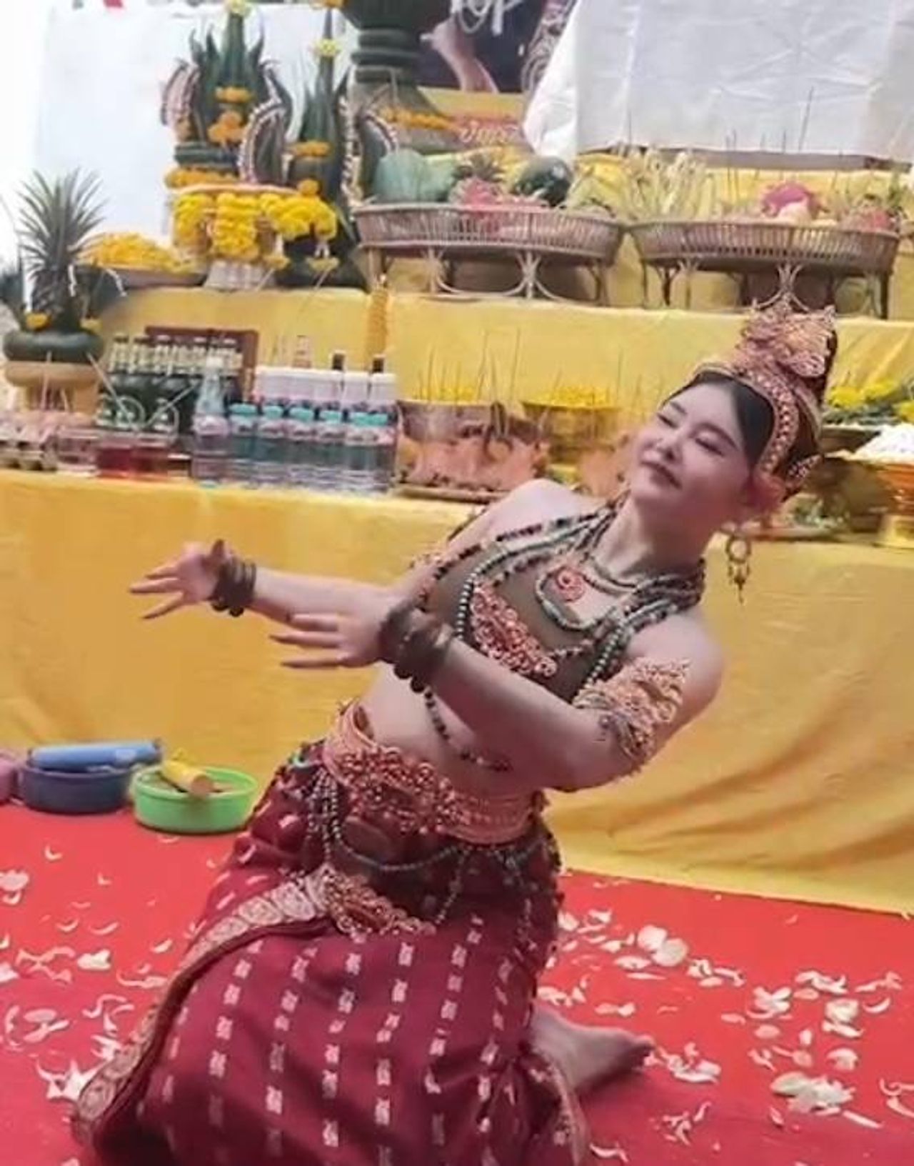 งดงามตราตรึงใจอย่างมาก ดาราสาวชาวเวียดนาม ลิลลี่เหงียน รำถวายพ่อปู่พญานาค พิธีไหว้ครูที่วัดอภิสิทธิ์หนองแวงม่วง จ.กาฬสินธุ์ งานนี้ทำเอาชาวบ้านถึงกับตาค้าง รำได้งดงามประหนึ่งนางรำไทยอาชีพ งานนี้เจ้าตัวถึงกับขนลุกซู่เปิดเผยปู่พญานาคจับมือรำ พร้อมเลขเด็ด