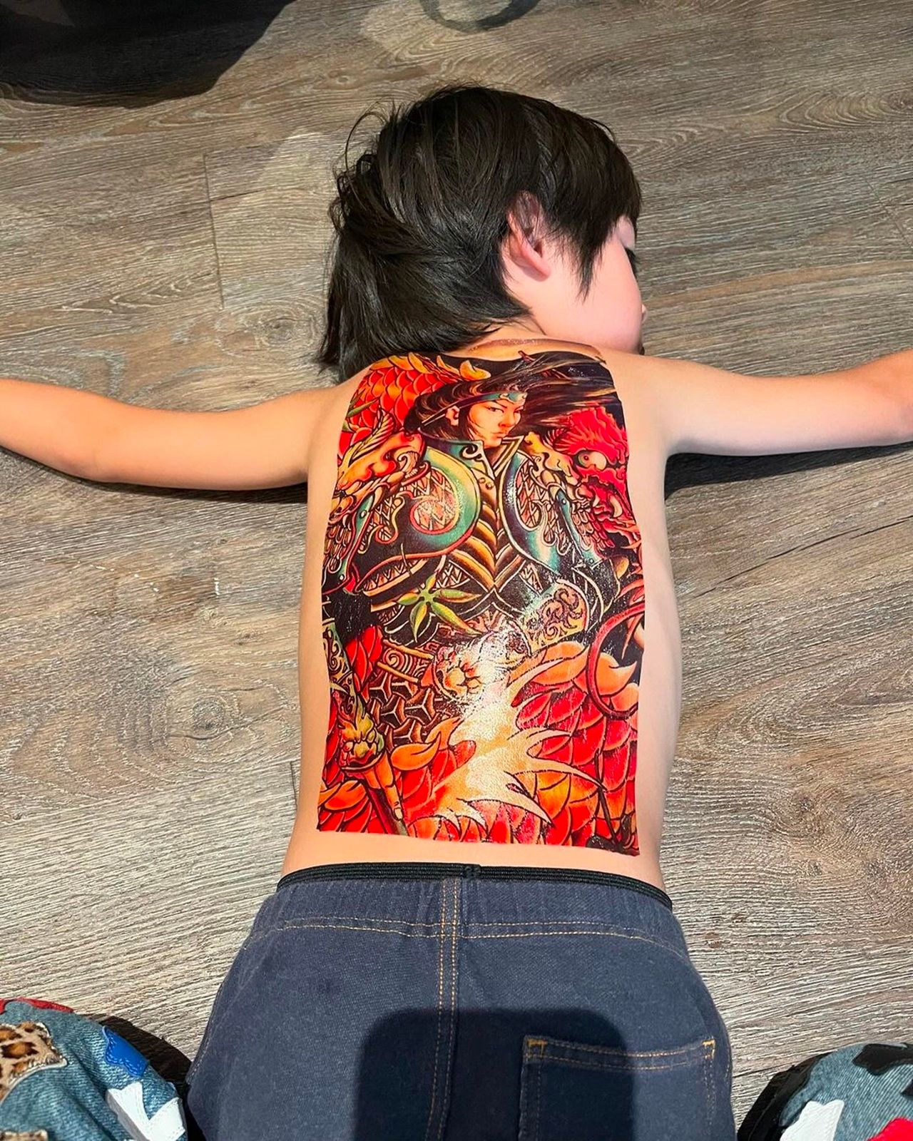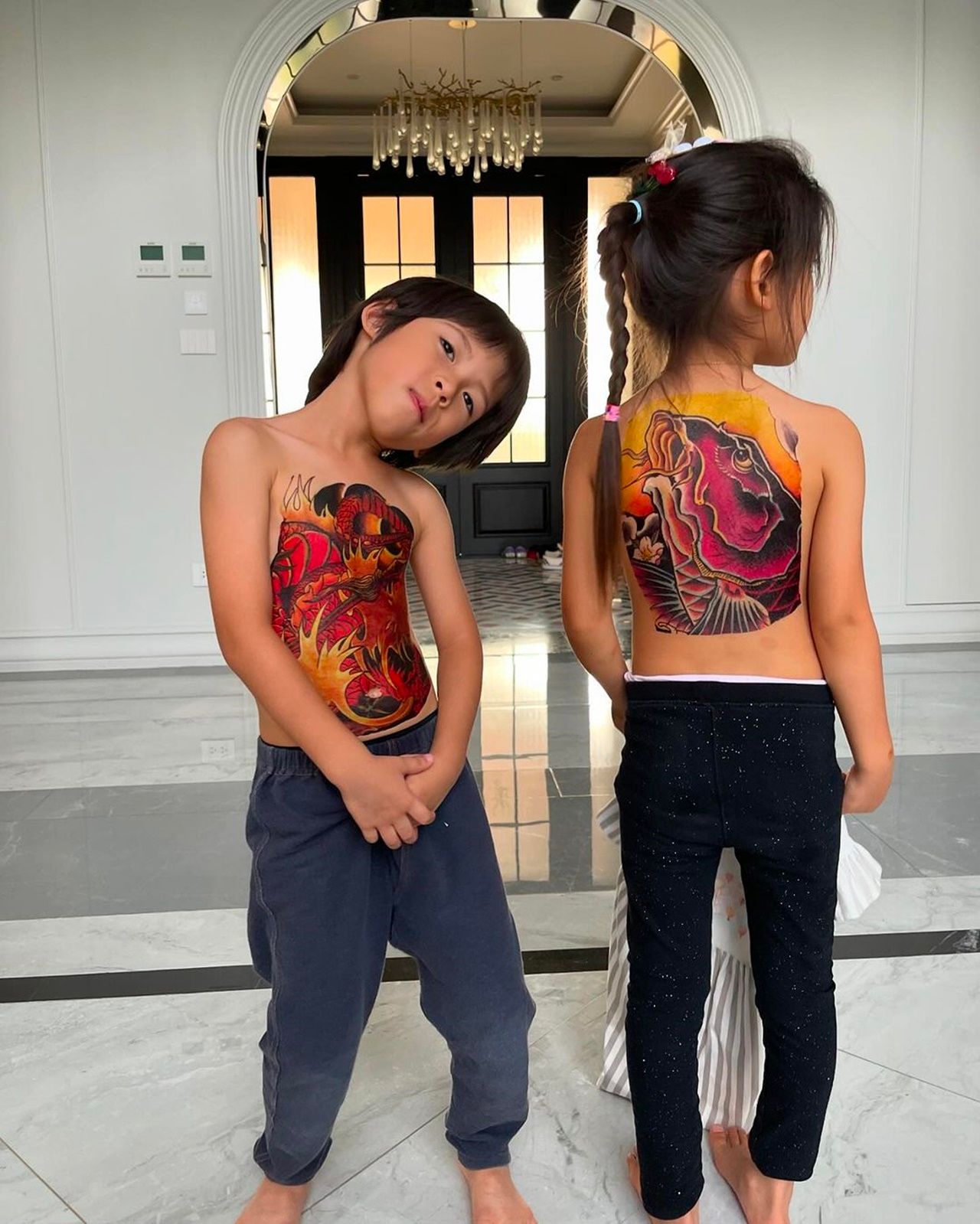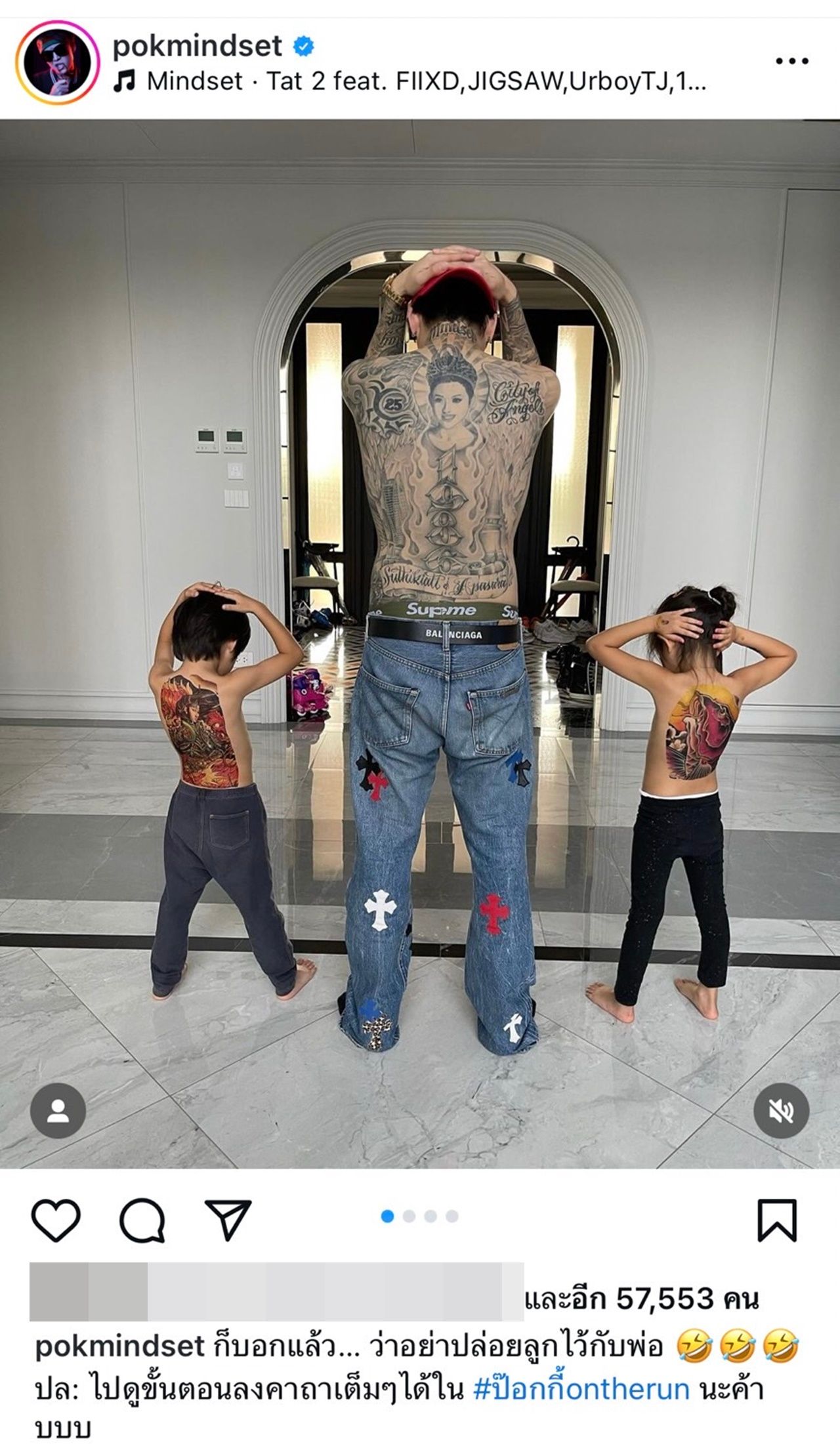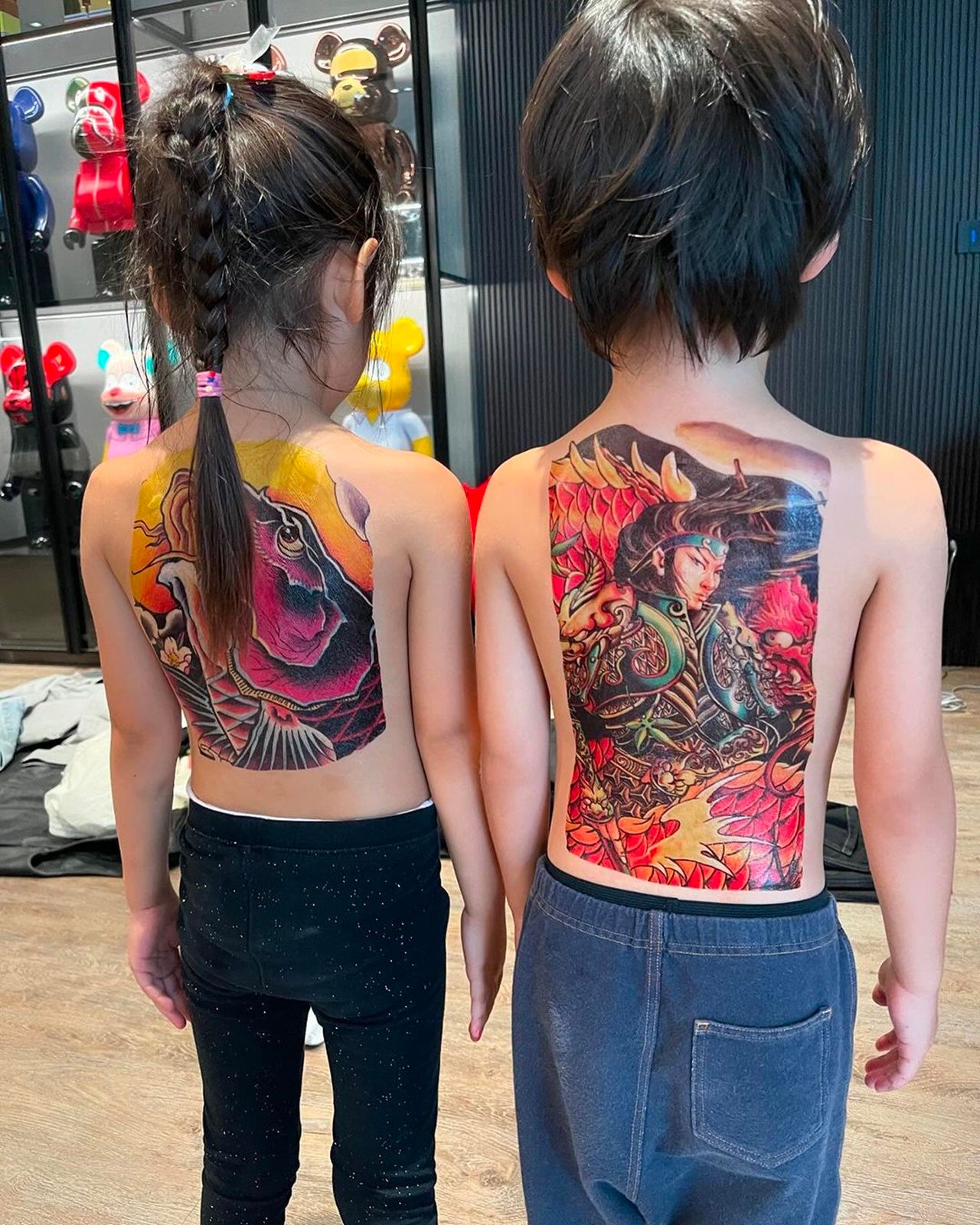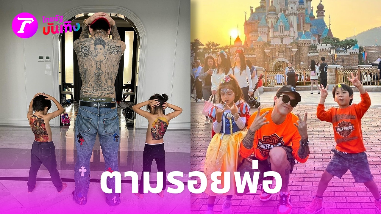 เมื่อเจ้าตัวได้เผยภาพสุดเท่และน่าเอ็นดูของลูกฝาแฝดชายหญิงอย่าง น้องมีก้า กับ น้องมีญ่า ที่ชวนอึ้ง มีรอยสักแบบเต็มทั้งแผ่นหลัง รวมถึงภาพที่ 3 คนพ่อลูกยืนหันหลังโชว์รอยสักสวยๆ ด้วยกัน พร้อมเขียนแคปชั่นว่า