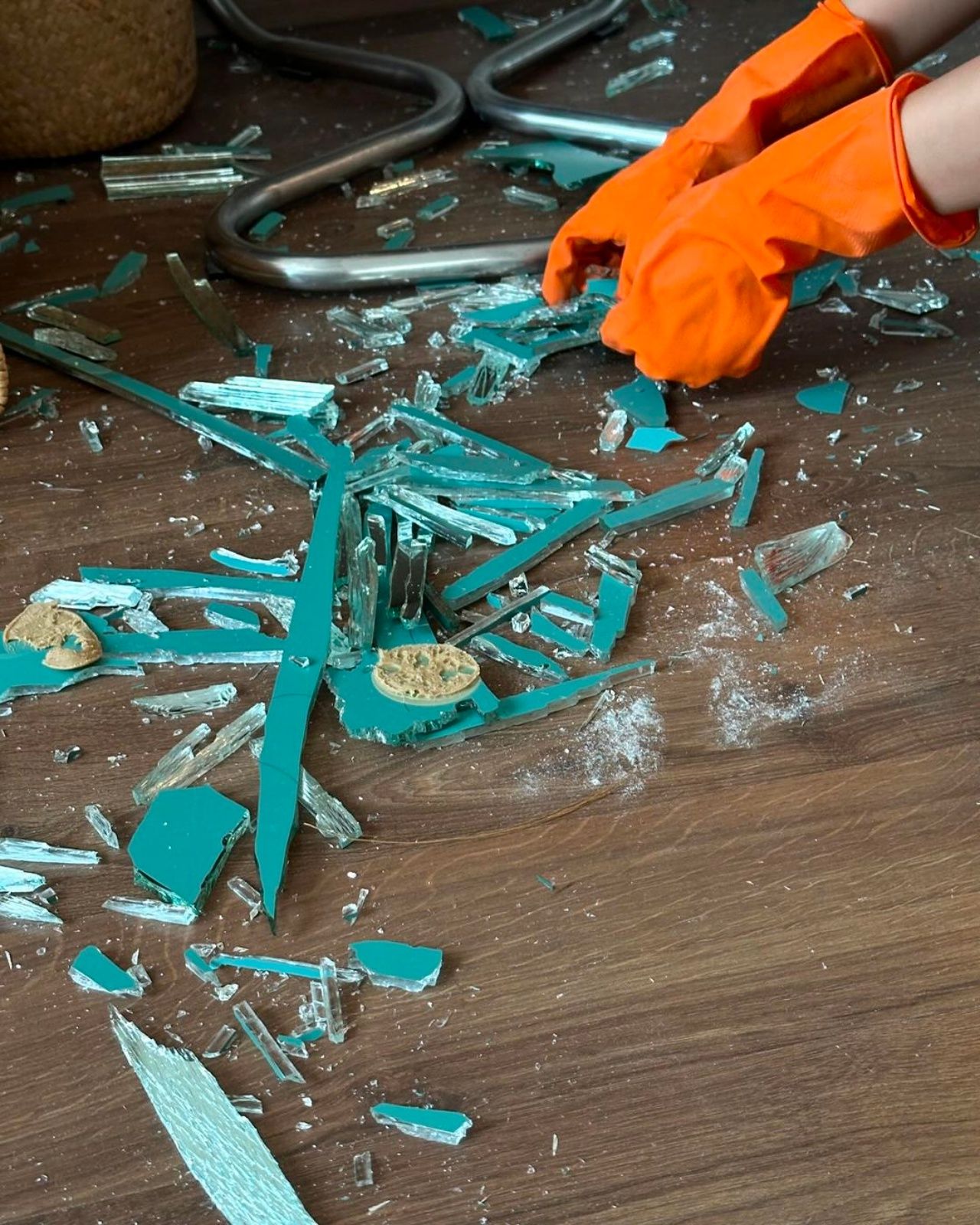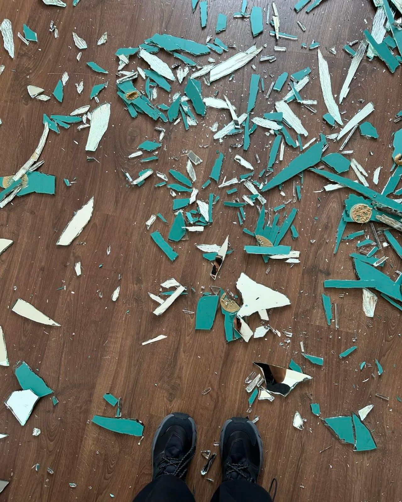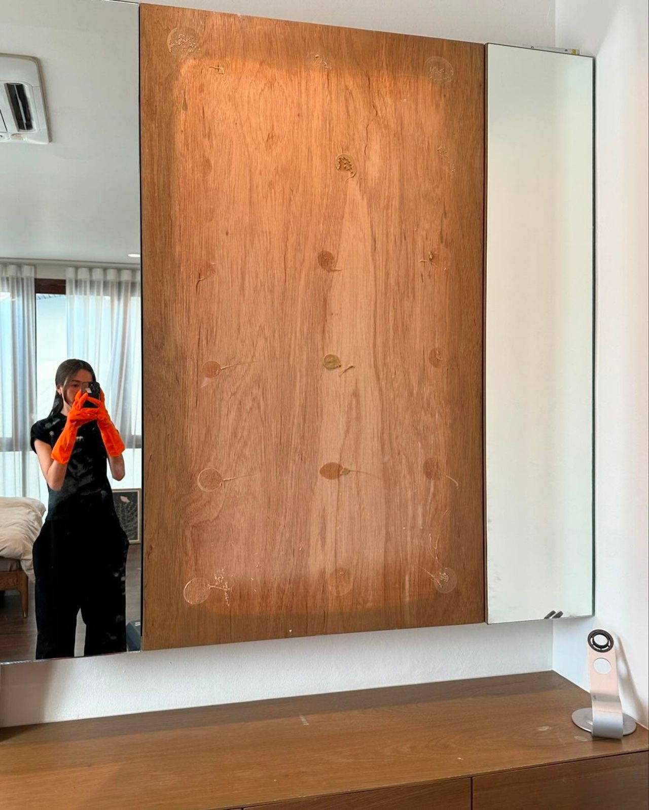 ทำเอาสาว อาย กมลเนตร ถึงกับช็อกเลยทีเดียว หลังจากที่ไปเที่ยวมา ไม่อยู่บ้าน 21 วัน แต่พอเปิดเข้ามาเจอเศษกระจกแตกกระจายอยู่เต็มห้อง พื้นเป็นรอยเละ ซึ่งเบื้องต้นยังไม่ทราบสาเหตุที่แน่ชัดว่าเกิดอะไรขึ้น แต่คิดว่าน่าจะเกิดจากกาวละลายเพราะอากาศร้อนมาก หรือกาวที่ยึดติดน่าจะน้อยเกินไป เลยทำให้กระจกตกลงมา