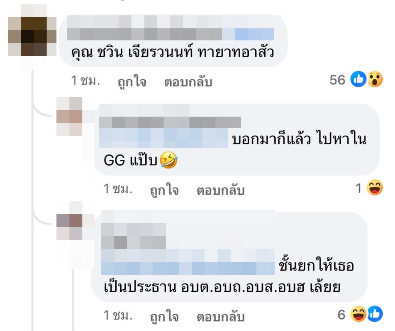 งานนี้ชาวเน็ตคอมเมนต์ว่า ถ้านักธุรกิจหนุ่มคนนั้น ที่ครอบครัวรวยอันดับ 1 ของประเทศ เชียร์ๆ เหมาะสมกับแม่นายมาก และชาวเน็ตยังชี้เป้าว่าหนุ่มคนนี้คือ ชวิณ เจียรวนนท์