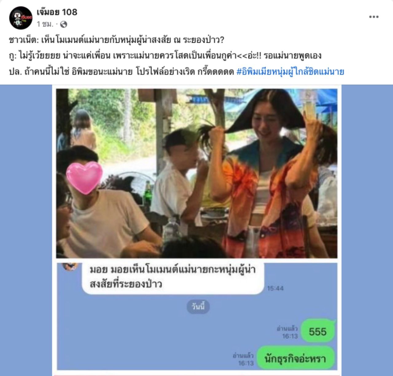 ทำเอาแฟนๆ ฮือฮากันยกใหญ่ เมื่อเพจเม้าท์ดาราชื่อดังอย่าง เจ๊มอย 108 ได้โพสต์ภาพของนางเอกสาว เบลล่า ราณี ขณะไปทำบุญที่ระยอง แต่งานนี้มีคนทักมาถามว่า "มอย มอยเห็นโมเมนต์แม่นายกะหนุ่มผู้น่าสงสัยที่ระยองเปล่า" ด้าน เจ๊มอย ก็ตอบกลับไปว่า "555 นักธุรกิจอะหรา" และนอกจากนี้ เจ๊มอย 108 ยังช่วยคอนเฟิร์มอีกว่า นักธุรกิจหนุ่มคนนี้โปรไฟล์ดีมาก หน้าตี๋ๆ และทายาทเครือระดับประเทศ หมื่นล้านไปเลย