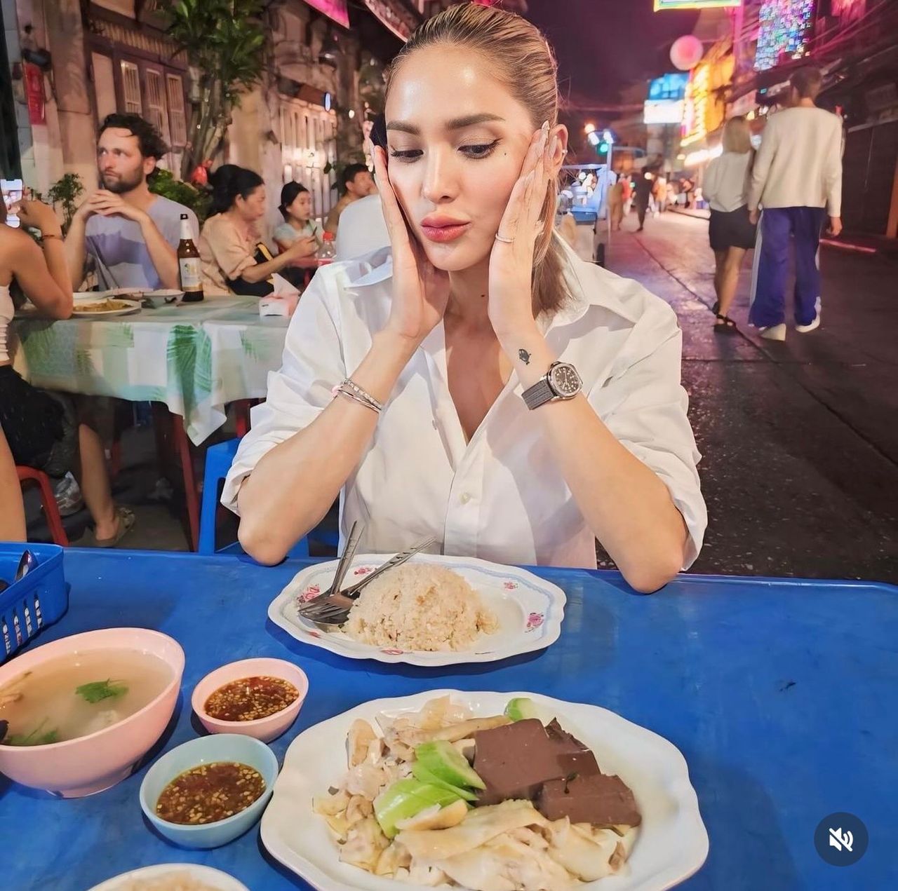 โดยโพสต์ภาพสวยๆ ทานอาหารข้างทาง พร้อมแคปชั่นระบุว่า "ทำบุญสวดมนต์ไหว้วันดาวพฤหัสย้าย ข้าวมันไก่เยาวราช #aummyyummy" ทำเอาชาวเน็ตชื่นชมความไม่ติดหรู กินอยู่ง่ายๆ ของเธอกันเป็นจำนวนมาก.