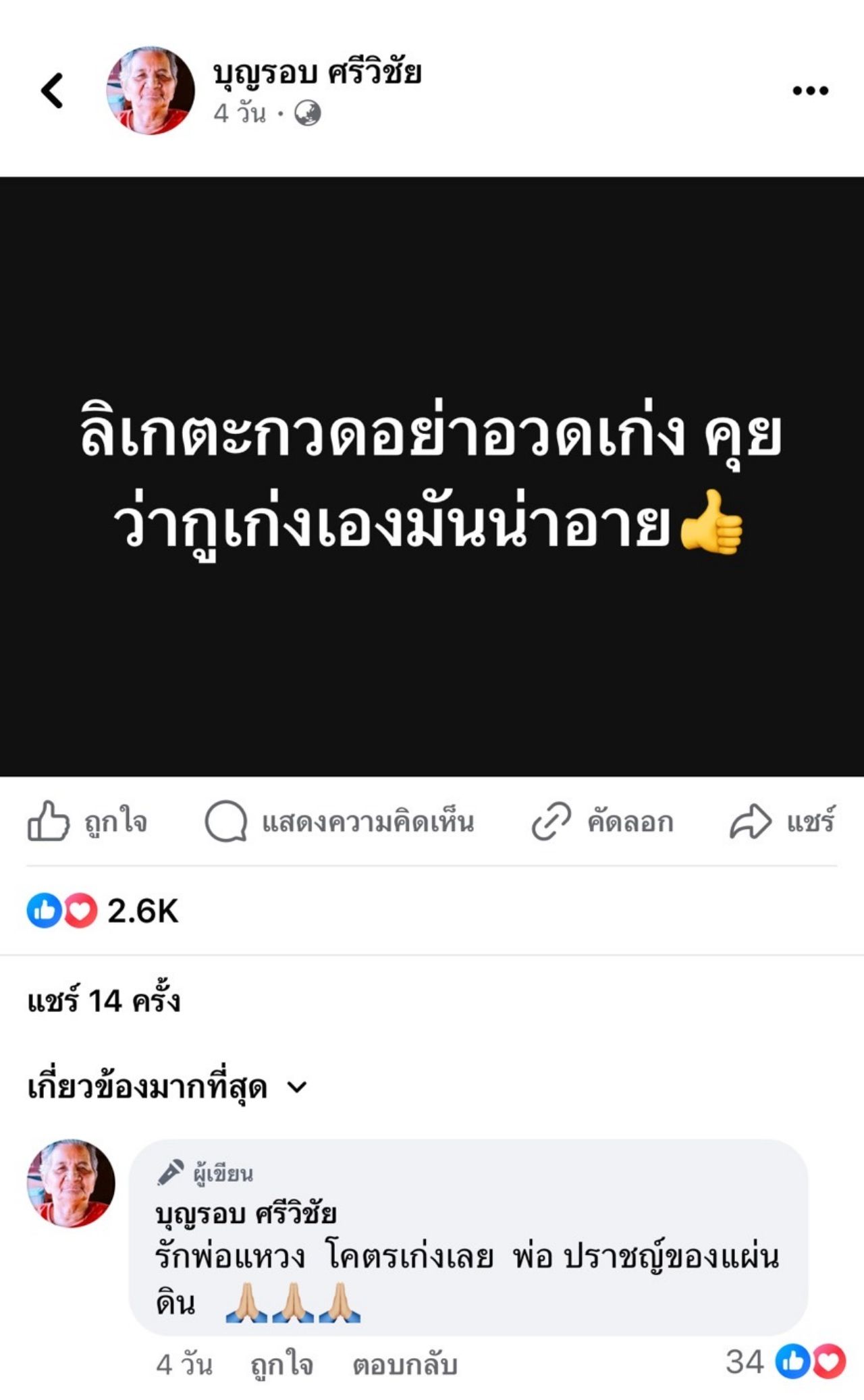 ล่าสุดพี่เอกโพสต์ว่าลิเกตะกวดอย่าอวดเก่ง คุยว่ากูเก่งเอง มันน่าอาย พอโพสต์แบบนี้เขาก็คิดว่าไปแขวะใครหรือเปล่า?