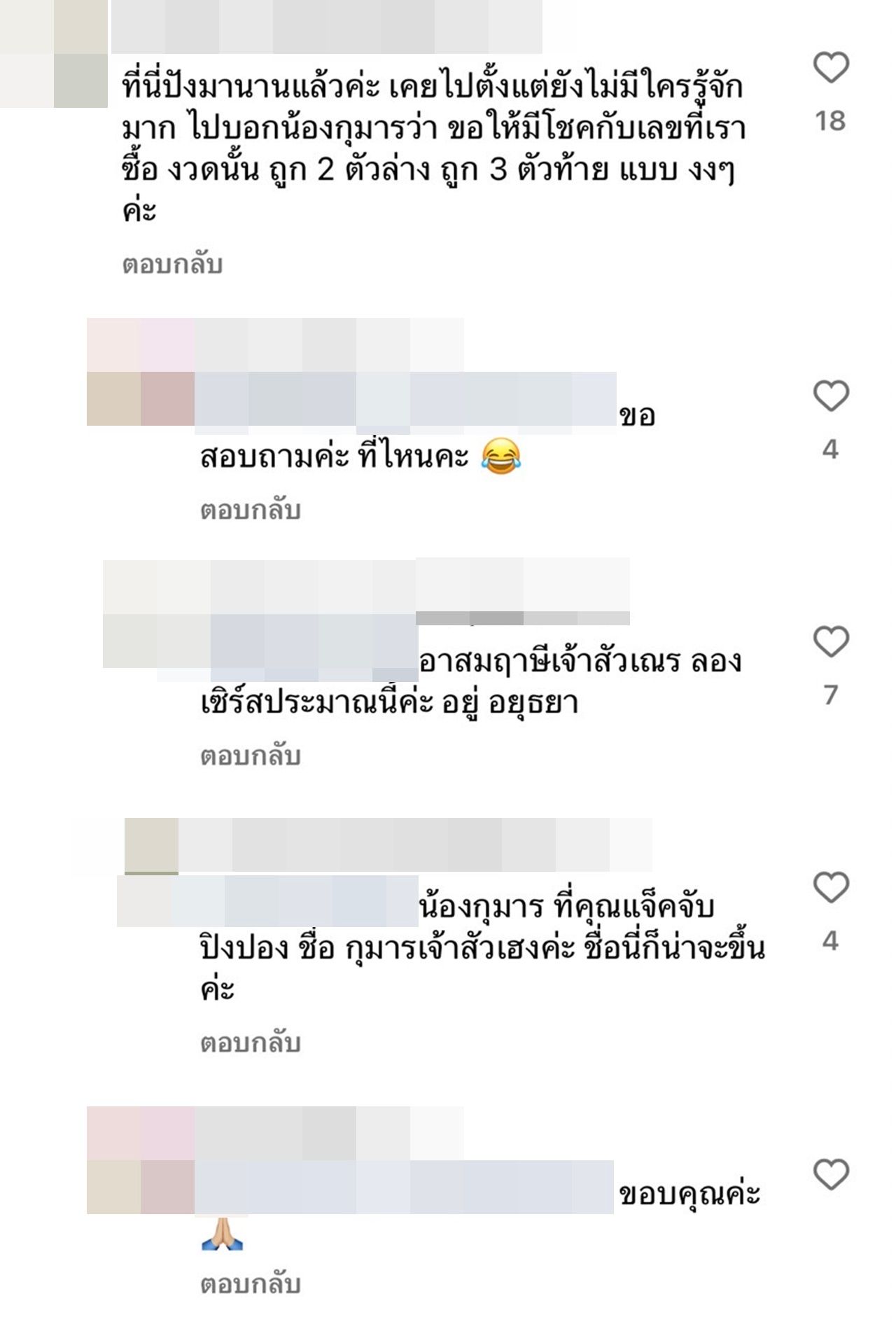 นอกจากนี้หลายคนที่ติดตามก็ต่างเข้ามาคอมเมนต์ขอพิกัดสถานที่ไปมูกันจำนวนมาก ซึ่งก็มีคนเข้ามาคอมเฟิร์มบอกว่า "ที่นี่ปังมานานแล้วค่ะ เคยไปตั้งแต่ยังไม่มีใครรู้จักมาก ไปบอกน้องกุมารว่า ขอให้มีโชคกับเลขที่เราซื้อ งวดนั้น ถูก 2 ตัวล่าง ถูก 3 ตัวท้าย แบบ งงๆ ค่ะ", "อาศรมฤาษีเจ้าสัวเณร ลองเสิร์ชประมาณนี้ค่ะ อยู่ อยุธยา" , "น้องกุมาร ที่คุณแจ็คจับปิงปอง ชื่อ กุมารเจ้าสัวเฮงค่ะ ชื่อนี่ก็น่าจะขึ้นค่ะ".