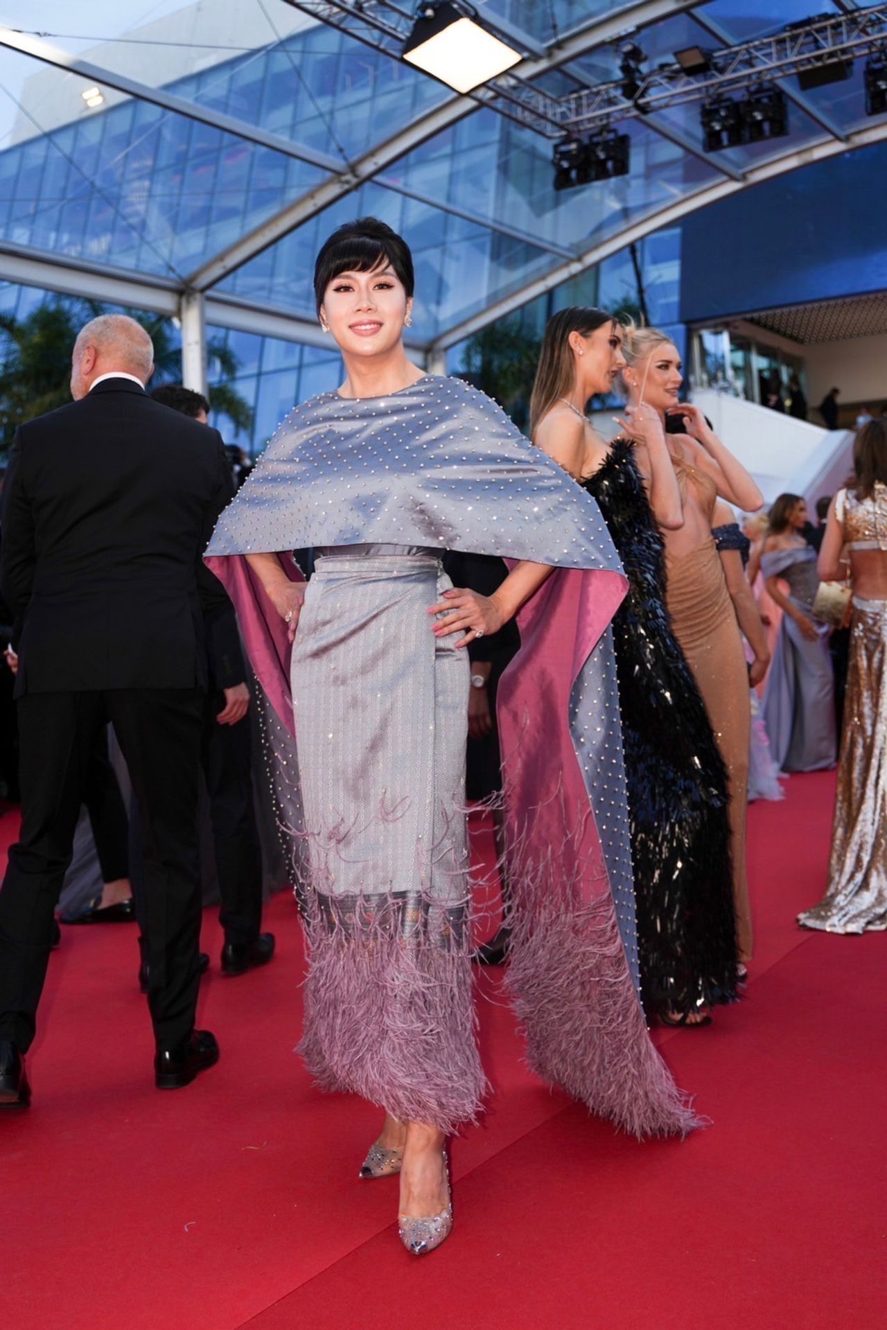 สุดปัง เมย์ เมย์ สวรรค์ ไฮโซตัวแม่ LGBT คนแรกที่เจิดจรัส บนงานพรมแดง เมือง คานส์ ในชุดลาวประยุกต์ โดย ห้องเสื้อ ASAVA แต่งหน้าโดย Lindsay Magic เรียกเสียงฮือฮาได้ไม่น้อย