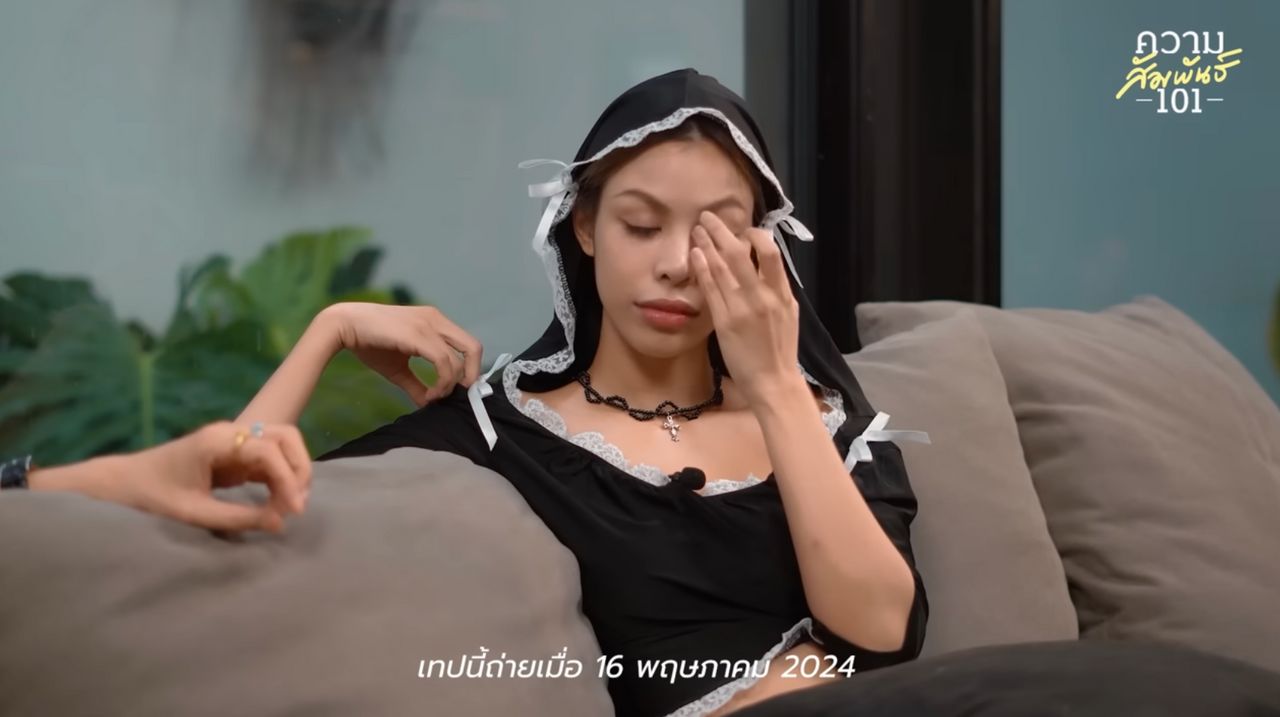 ที่ทะเลาะกัน หนูจะไปทำงาน แล้วนางจะขี้หึงมาก แล้ววันนั้นนางว่าง นางก็ขอไปด้วยได้มั้ย เราก็มองว่าเราเพิ่งเข้าวงการ เราก็บอกว่าไม่ต้องไปก็ได้ วันหยุดอยู่บ้านพักผ่อน ชีก็บอกว่า ถ้าไม่ให้ไปก็ไม่ต้องมีหรอกแฟน เราก็แบบ ทำไมมันดูใหญ่จัง แล้วก็ขนของกลับบ้านเลย (ขนของกลับบ้านเลยเหรอ) เป็นมาหลายรอบแล้วแม่