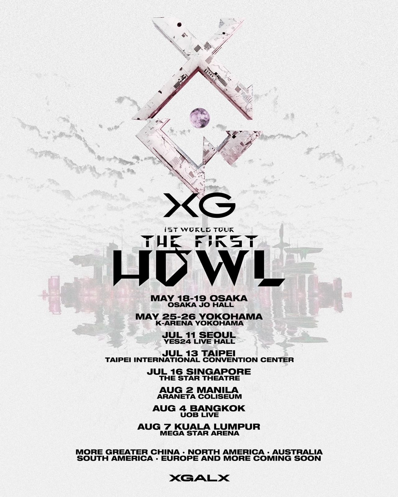 XG พร้อมสานต่อความปังอย่างต่อเนื่องกับคอนเสิร์ต “XG 1st WORLD TOUR 'The first HOWL'” ที่ K Arena Yokohama ในวันที่ 25 และ 26 พฤษภาคม ก่อนเดินสายเสิร์ฟความสนุกในหลายเมืองใหญ่ทั่วเอเชียตลอดเดือนกรกฎาคมและสิงหาคม ทั้งยังมีแผนเพิ่มรอบการแสดงที่จีนแผ่นดินใหญ่, อเมริกาเหนือ, หมู่เกาะทางแปซิฟิก, อเมริกาใต้ และ ยุโรป ติดตามรายละเอียดการทัวร์อย่างเป็นทางการเพิ่มเติมได้ ที่นี่