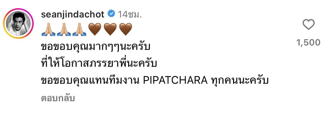 ทางด้านของ ฌอห์ณ จินดาโชติ ก็ได้เข้ามาคอมเมนต์ด้วยเช่นกันว่า "ขอขอบคุณมากๆๆ นะครับที่ให้โอกาสภรรยาพี่นะครับ ขอขอบคุณแทนทีมงาน PIPATCHARA ทุกคนนะครับ"