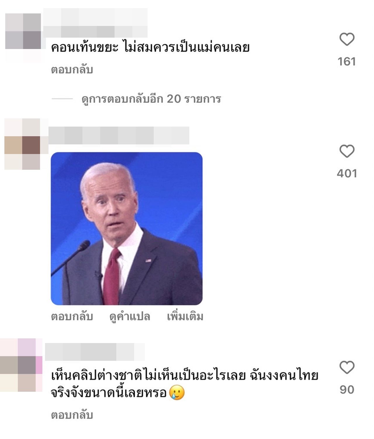 นอกจากนี้ยังมีคอมเมนต์อีกมากมายที่เข้ามาติงด้วยคำพูดที่รุนแรงมากทีเดียว.