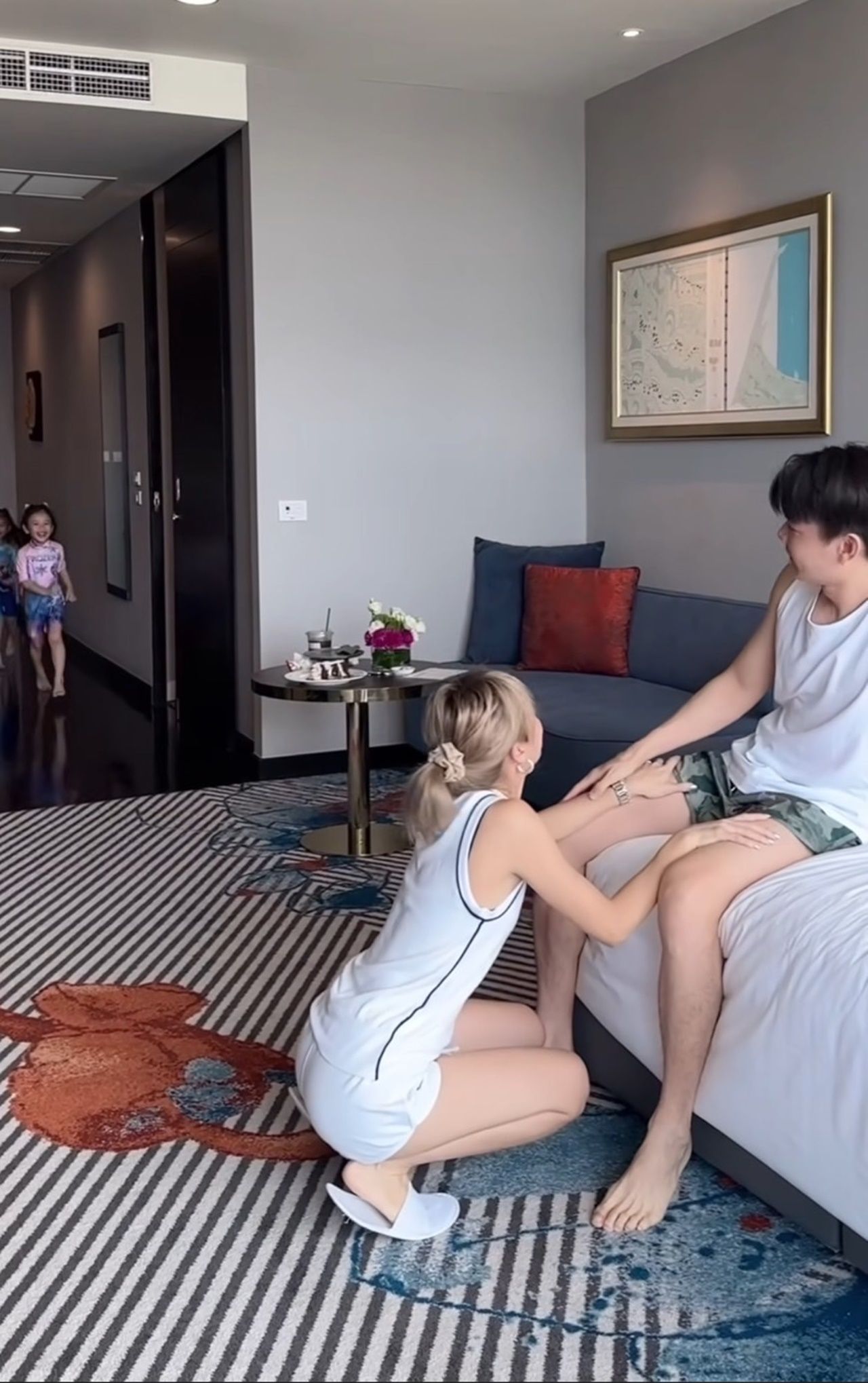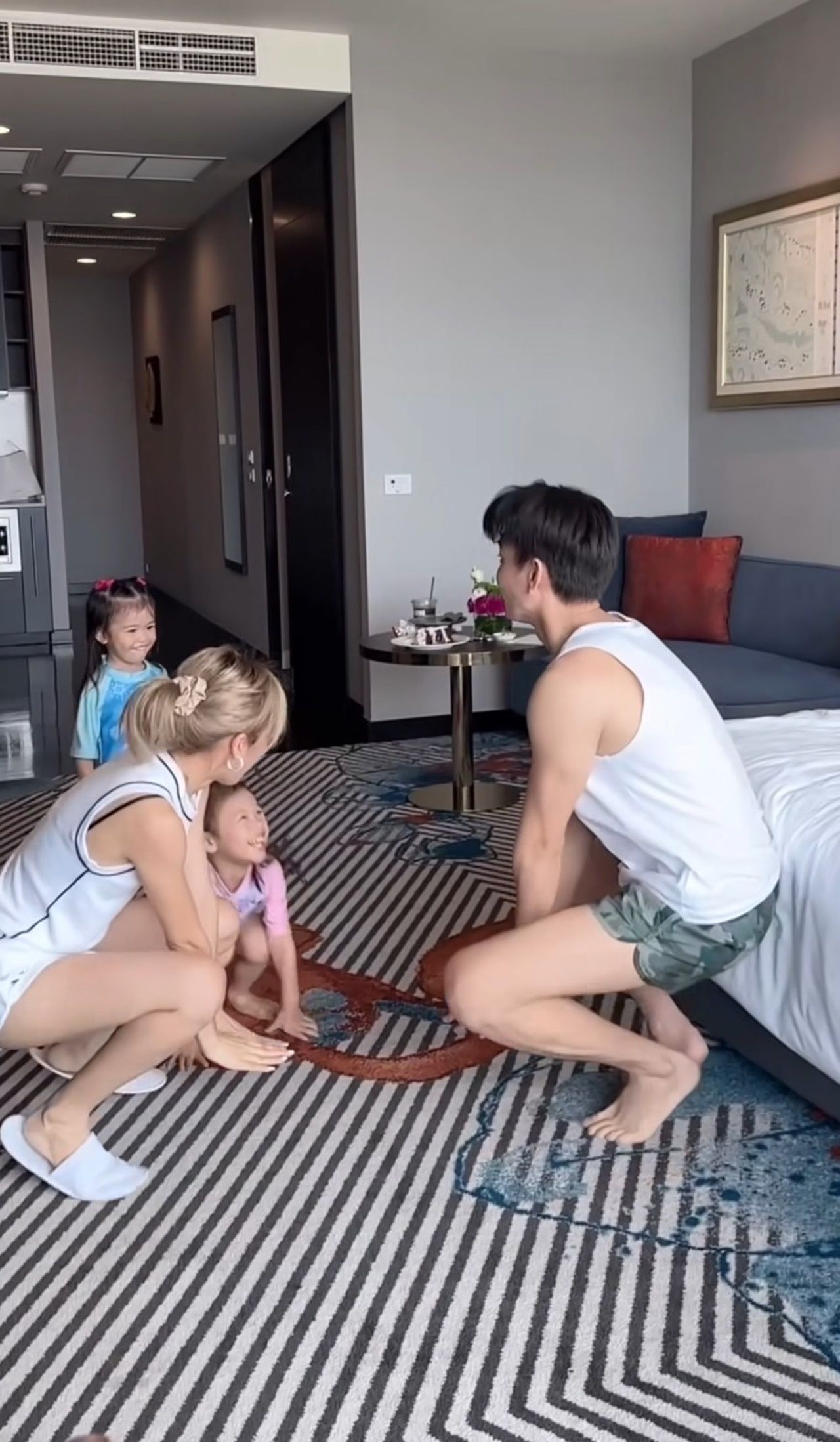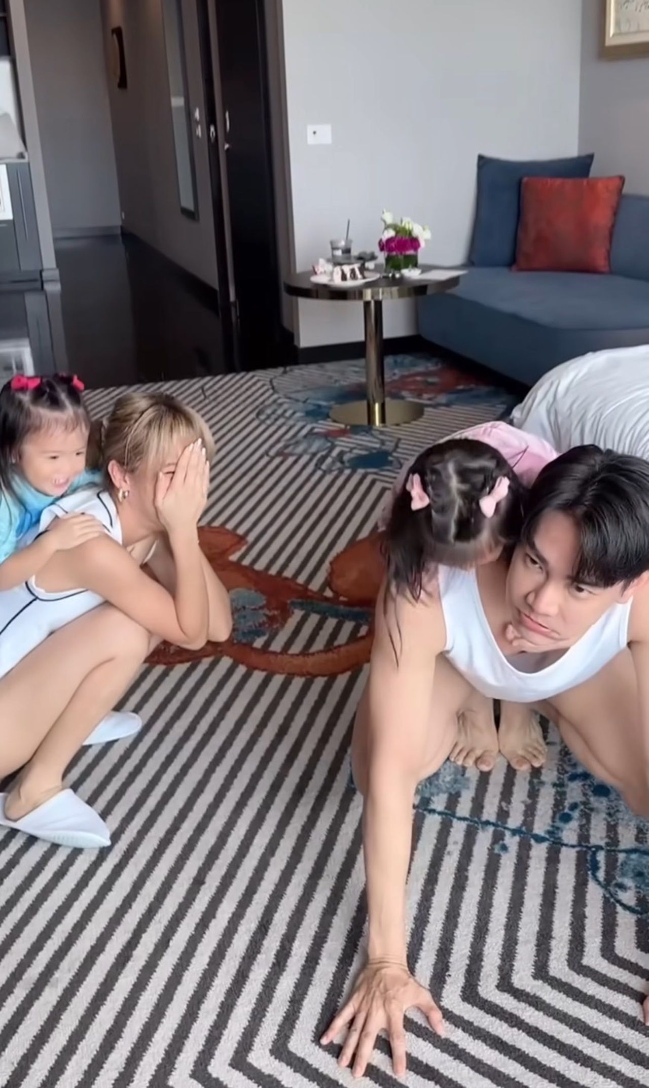 โดยในคลิปฟลุคกับแอปเปิ้ลได้จุ๊บปากกัน จากนั้นกำลังจะ Make Love แต่ลูกสาวทั้ง2 คน อย่าง น้องจูนี่-น้องจูน่า วิ่งเข้ามาพอดี ทั้งคู่เลยเปลี่ยนมาเป็นท่ากระโดดกบ เล่นกับลูกแทน พร้อมเขียนแคปชั่นว่า "เมื่อพ่อกับแม่ไป Staycation เกือบแล้ว กำลังจะได้แล้วววอ่าๆๆๆ"