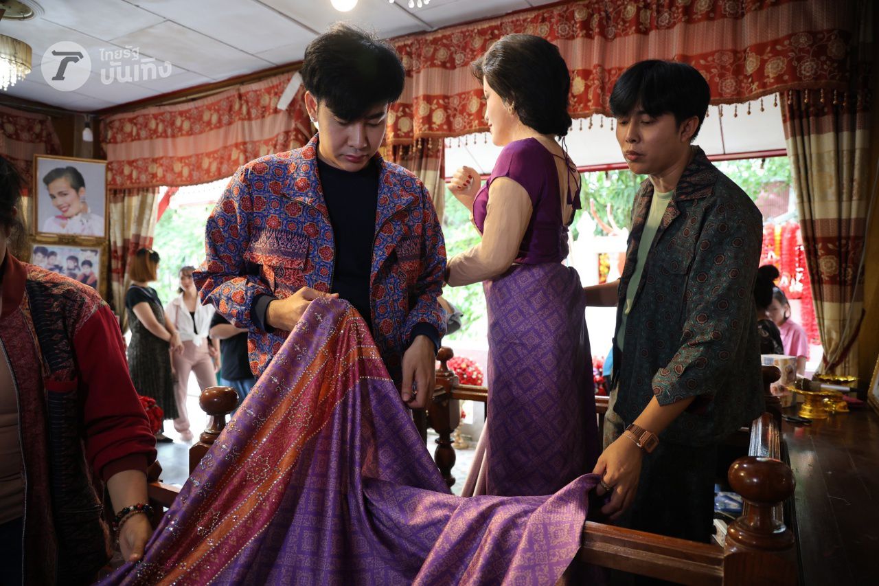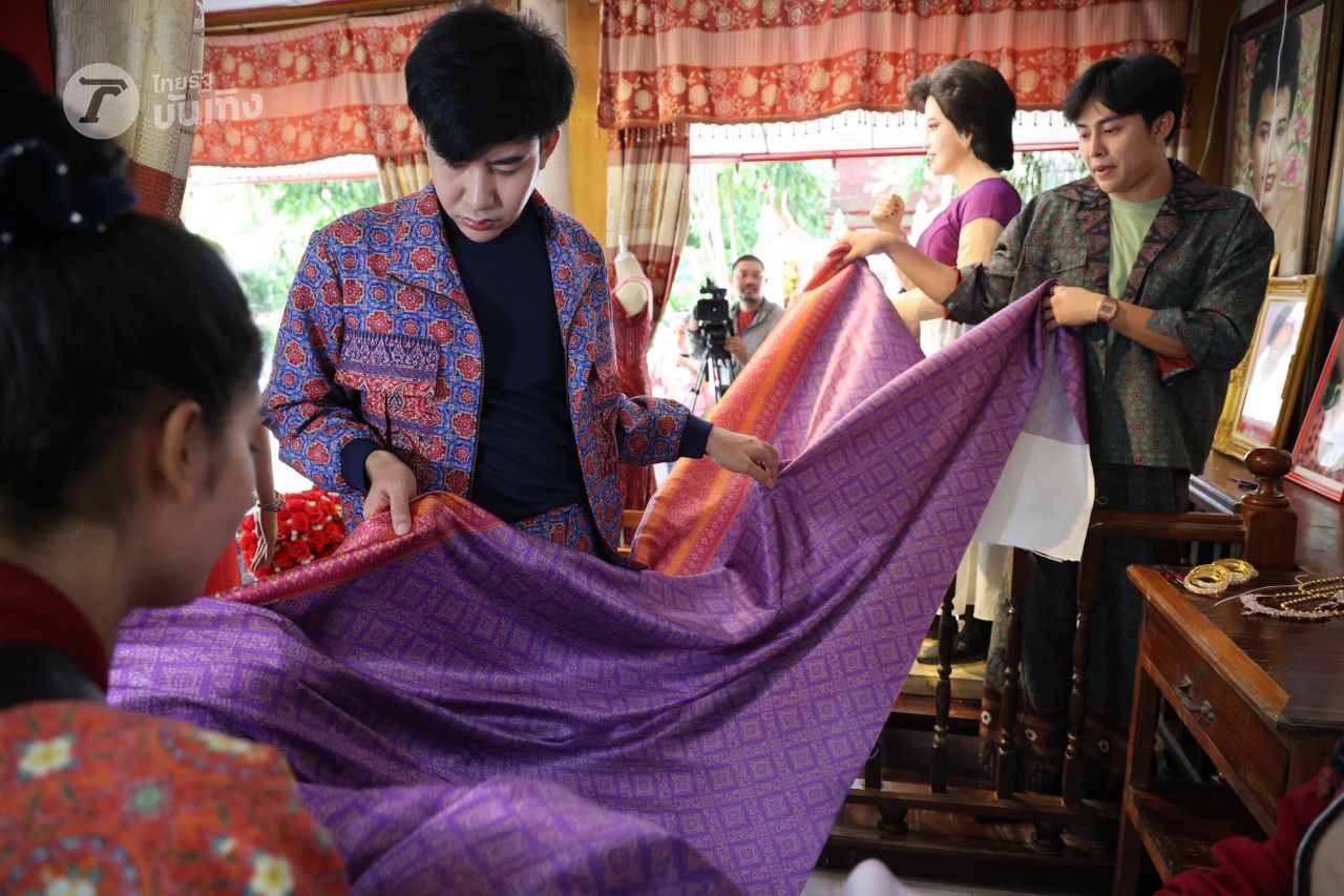 ความพิเศษของชุดที่วัดทับกระดาน ทีมงานร้านภูษาผ้าลายอย่าง เลือกจากสีที่แม่ผึ้งชื่นชอบ คือสีม่วง โดยชุดหุ่นที่ 1 ที่ศาลาริมน้ำ เป็นการนำผ้าไทยมาทำชุดสไตล์ส่าหรีอินเดีย เน้นงานปักเพชร และขึ้นผ้าลายเทียมยกทองสีม่วงดอกตะแบก เพื่อให้เป็นเอกลักษณ์ประจำตัวหุ่นแม่ผึ้ง และยังไม่ทิ้งเอกลักษณ์ของการเป็นภูษาผ้าลายอย่าง
