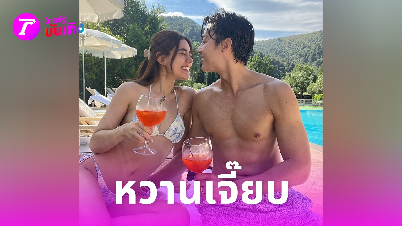 เป็นภาพนี้ทั้งคู่นั่งชิลๆ อยู่ที่ริมสระว่ายน้ำ คุณภรรยานุ่งบิกินีตัวจิ๋วสวยแซ่บ ส่วนคุณสามีก็ซิกซ์แพ็กแน่นไม่แพ้กัน นั่งสวีตกันริมสระว่ายน้ำโรงแรม 5 ดาว