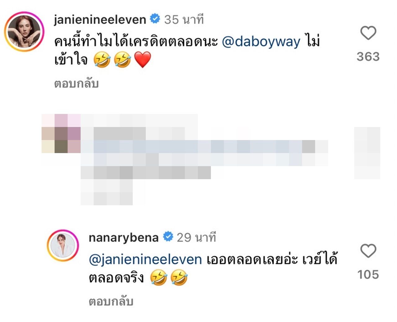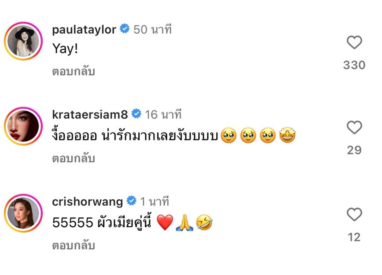 งานนี้เพื่อนแก๊งนางฟ้าคนอื่นๆ ต่างเข้ามาคอมเมนต์ดีใจหนักมาก เพราะในที่สุดสาวๆ จะกลับมาอยู่กันพร้อมหน้าครบแก๊งแล้ว และหลายคนที่ติดตามต่างเข้ามาแสดงความยินดีกันจำนวนมาก.