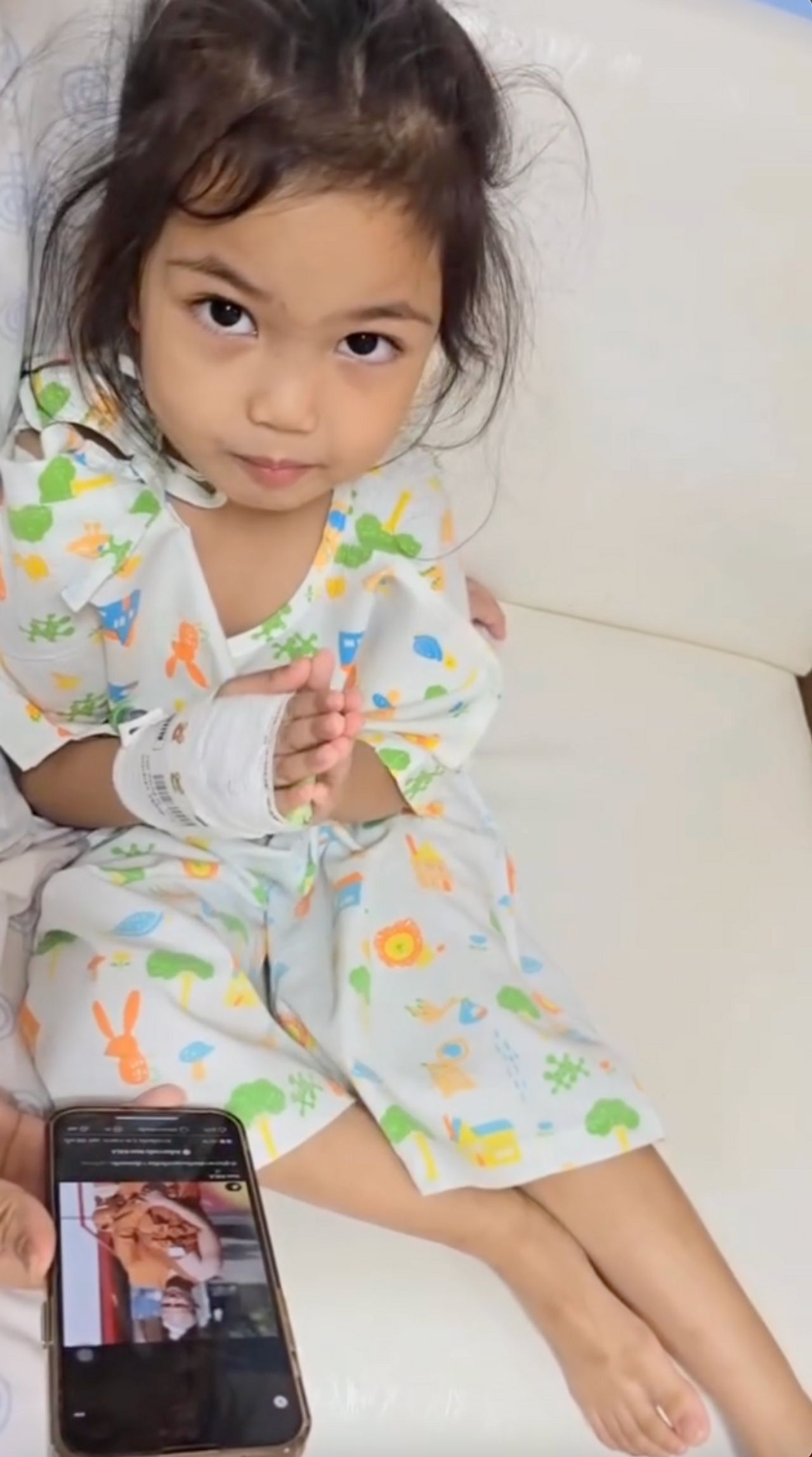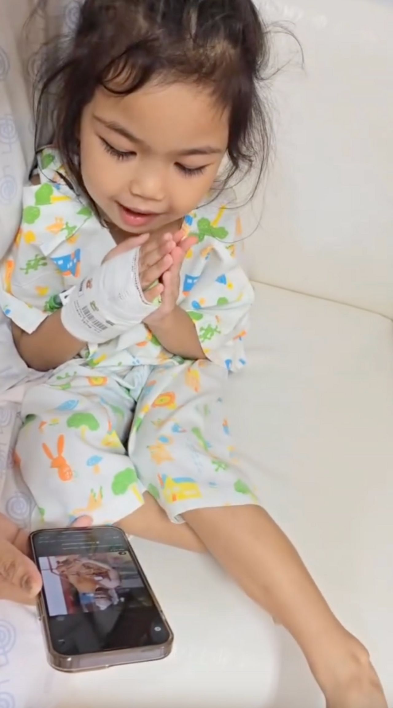 โดยในคลิปดังกล่าว ลูกสาวยังอยู่ที่โรงพยาบาลหลังจากต้องแอดมิตเนื่องจากไม่สบาย ซึ่งในคลิปน้องมิลล์ได้พนมมือพร้อมกับพูดว่า ธุจ้า อนุโมทนาสาธุ ก่อนที่แม่จูนจะถามต่อว่า ไปใส่บาตรปะป๊ามั้ย ซึ่งสาวน้อยก็พยักหน้า