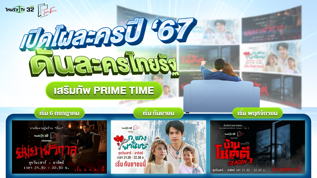 ไทยรัฐทีวี เดินหน้าลุยครึ่งปีหลังเต็มกำลัง เสริมทัพวันหยุดช่วงเวลาไพรม์ไทม์ ด้วยการปรับผังใหม่ นับเป็นการเปลี่ยนแปลงผังรายการช่วงเวลาไพรม์ไทม์ในรอบหลายปี โดยจับมือกับ บริษัท ทวิน เฟลม จำกัด เดินหน้าลุยโปรเจกต์ส่งละครใหม่ 3 เรื่อง 3 รสชาติ ซึ่งยังคงความเป็น ‘ละครไทยรัฐ’ ในสไตล์ที่แฟนๆ ของช่องคุ้นเคย กับการเป็นละครน้ำดี ดูได้ทั้งครอบครัว เนื้อหาสนุก ตื่นเต้นและแฝงไปด้วยแง่คิด รวมถึงการกลับมาอีกครั้งของบ้านโชคดี ซีซั่น 3 ตามคำเรียกร้อง ละครทั้ง 3 เรื่องพร้อมเสิร์ฟความสนุก 1 ชั่วโมงเต็ม สัปดาห์ละ 2 ครั้ง ทุกวันเสาร์ อาทิตย์ เวลา 21.30-22.30 น. หลังจบรายการไทยรัฐนิวส์โชว์ ทางไทยรัฐทีวี ช่อง 32
