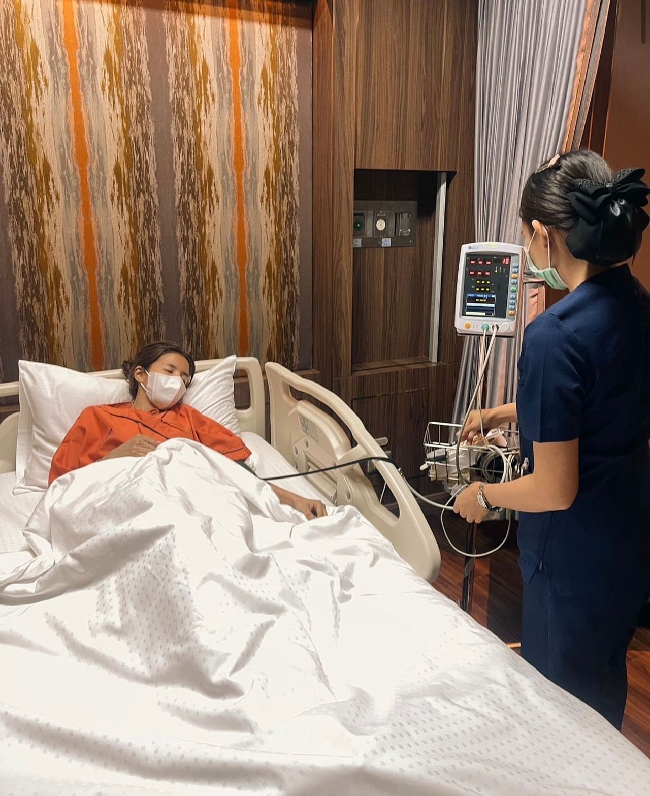 โดยทางผู้จัดการส่วนตัวได้โพสต์ภาพสาว "ใบเตย" นอนซมอยู่บนเตียงคนไข้ พร้อมระบุข้อความว่า "เป็นไงละคนเก่ง เก่งจนไข้ขึ้น 37 หอบหืดกำเริบ หามส่งรพ. กันเลยจ้าพักไปเลยยาวๆ นะคะคุณแม่ ปล.รอผลโควิดกับไข้หวัดใหญ่สายพันธุ์ a" ท่ามกลางแฟนๆ ที่เข้ามาส่งกำลังใจจำนวนมาก.