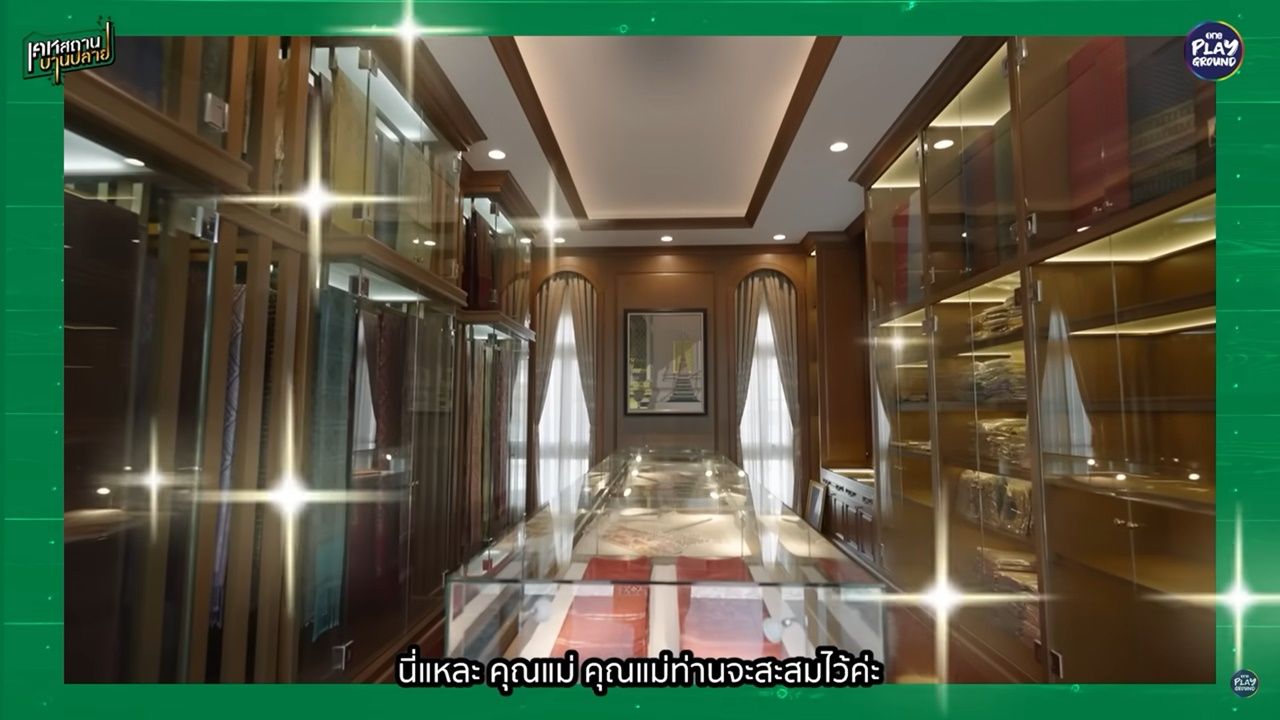 นอกจากนี้ยังมีห้องของคุณแม่บังอร ที่เป็นเหมือนพิพิธภัณฑ์ผ้าไหมไทย ซึ่งคุณแม่ได้สะสมไว้ และจะมีสำหรับซื้อมาเก็บไว้เพื่อเอาไว้ตัดชุดออกงาน รวมๆ แล้วห้องนี้ประเมินค่าไม่ได้จริงๆ