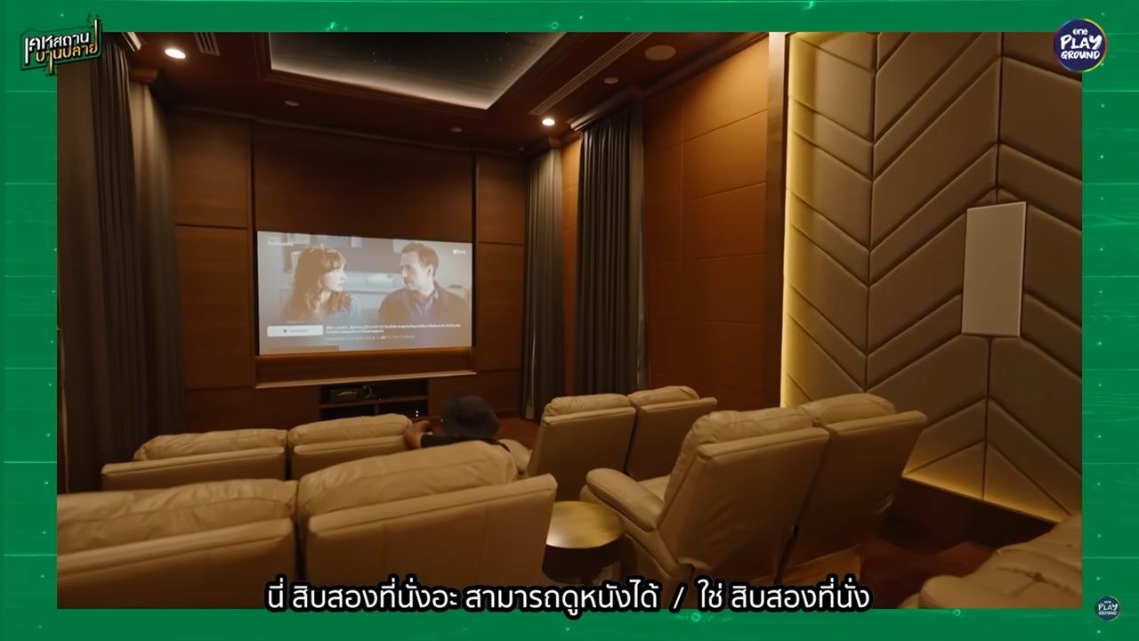 บ้านหลังนี้ยังมีห้องโฮมเธียเตอร์อีกด้วย ซึ่งเฟอร์นิเจอร์เบาะนอนดูหนังเป็น Lazy Boy ตัวท็อป จำนวน 12 ที่นั่ง