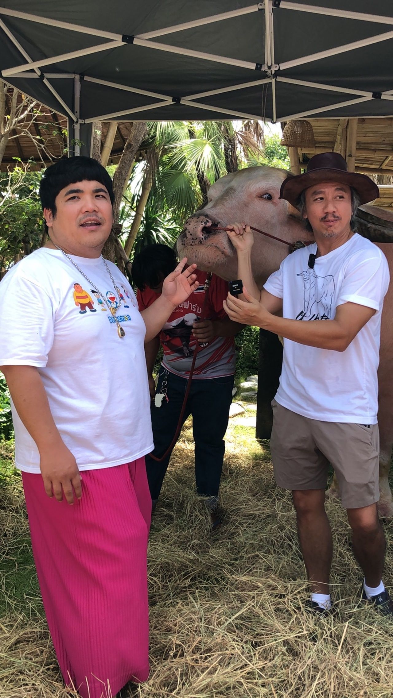 แล้วอันนี้โอ้เขาก็มองว่าน่ารักด้วย ควายแจ็คกับควายโอ้ผสมพันธุ์กัน (หัวเราะ) แต่ไอ้โอ้เนี่ย เดี๋ยวชวนทำอย่างอื่นเรื่อยๆ ไม่ต้องห่วง มันหนีผมไม่ได้หรอก ถ้ามันหนีผม ชีวิตมันดรอปแน่ ก็ยังไม่เคยทำธุรกิจด้วยกัน เคยแต่คุยกันบ่อยๆ".