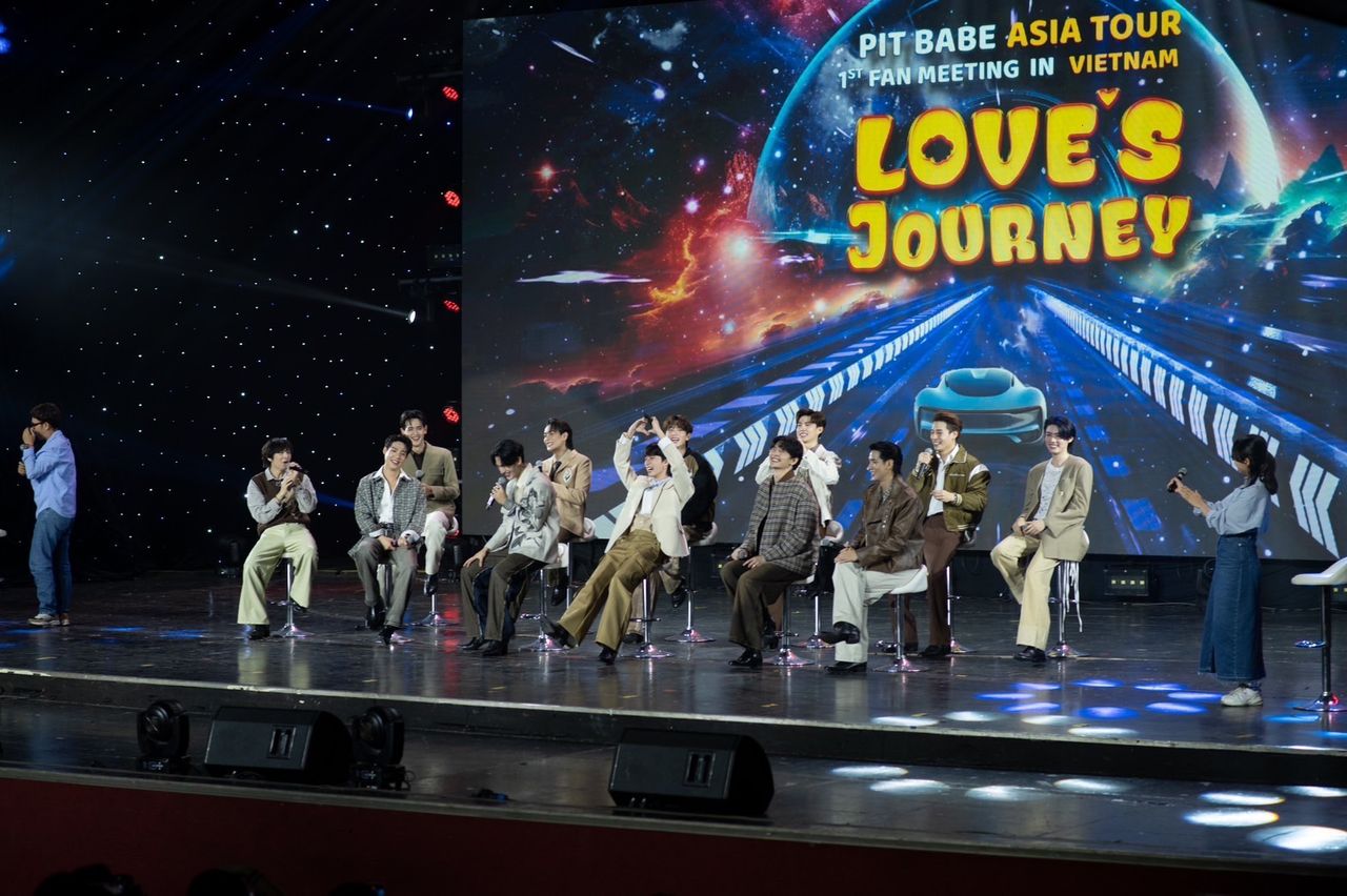 โดยบรรยากาศภายในงาน “PIT BABE ASIA TOUR 1ST FAN MEETING LOVE'S JOURNEY IN VIETNAM” เริ่มต้นความสุข เมื่อทั้ง 12 หนุ่ม กล่าวสวัสดีทักทายเป็นภาษาเวียดนาม พร้อมกับเกมสนุกกับประโยคหวานที่ทั้ง 12 หนุ่ม ต้องพูดภาษาเวียดนาม อย่าง ขอให้ผมเป็นคนที่คุณนึกถึงก่อนนอนได้ไหม, นอกจากอยากดูแลคุณแล้วผมก็ไม่อยากทําอะไรอีกเลย, ผมบอกคุณรึยังว่าผมเป็นคนที่โชคดีที่สุดในโลกที่ได้มาเจอคุณ ทำเอาอินเตอร์แฟนกรี๊ดสนั่น จากนั้นเพิ่มความสุขด้วยการพาเข้าสู่โหมดของ SET เพลงแทนความรู้สึกของเหล่าตัวละคร “PIT BABE THE SERIES” หลังจากนั้น 12 หนุ่ม ได้พาทุกคนไปสนุกกันต่อกับช่วงเวลาที่เต็มไปด้วยรอยยิ้มแห่งความสนุกกับเกมคำปริศนา โดยในเกมนี้แบ่งเป็น 2 ทีม ซึ่งแต่ละทีมก็โชว์ลีลาท่าทางร่างกายในการใบ้คำ โดยห้ามออกเสียงมาอย่างเหนือชั้น งานนี้ทีมที่แพ้ถูกทำโทษด้วยการเต้นสุดคิ้วท์ในเพลง See Tinh ซึ่งเป็นเพลงดังของ VIETNAM ทำเอาแฟนๆ กรี๊ดสนั่นอย่างต่อเนื่อง