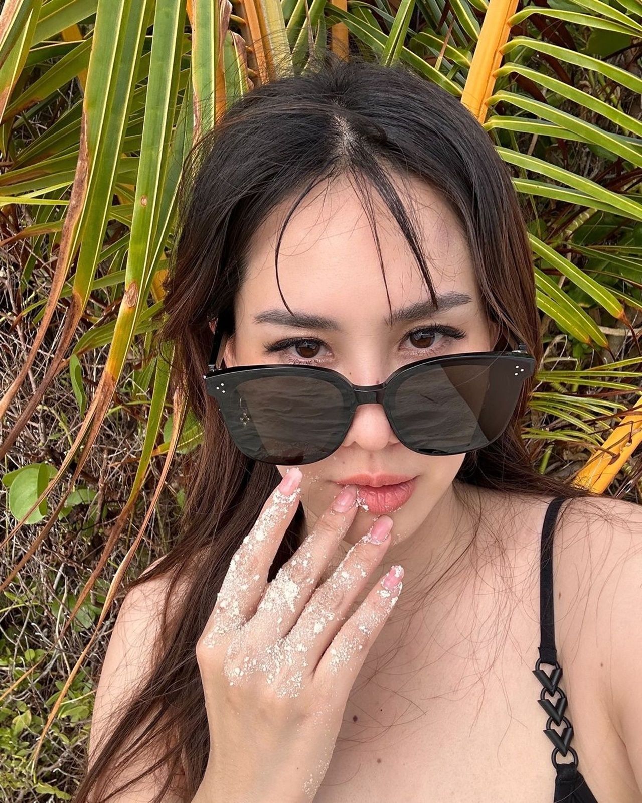 จากนั้นก็ได้โพสต์ภาพใส่บิกินีคนเดียวแบบสวยๆ และเขียนว่า พร้อมระบุอีกว่า "เกิดได้ยัง อยู่ลำพังละ #ลำโพงหรือจะสู้ลำพัง #คนจะเกิดคุมกำเนิดก็เอาไม่อยู่ #มัลดีฟส์ #maldives".