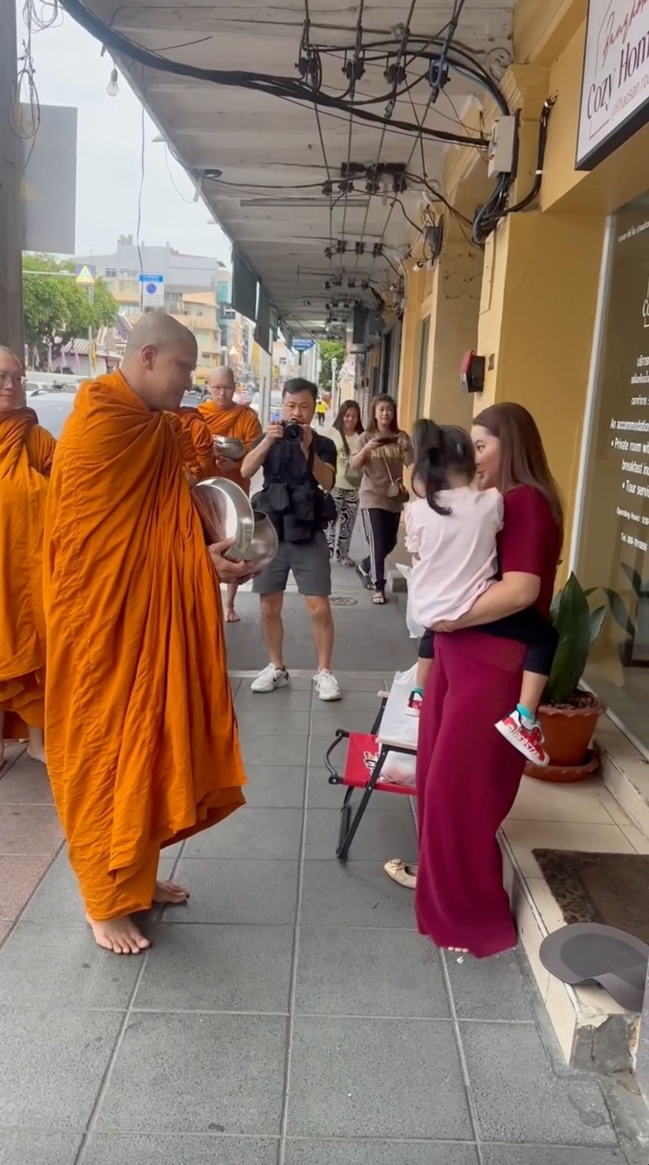 ล่าสุด (23 มิ.ย.) แม่จูนได้เผยคลิปที่อุ้มลูกสาวไปใส่บาตรพระหนุ่มพร้อมแคปชั่นว่า "อนุโมทนาบุญค่ะ คนสวยโดนควักออกมาจากเตียงเลยยังไม่จอยเท่าไหร่" งานนี้ก็มีแฟนๆ มาคอมเมนต์อนุโมทนาสาธุอย่างมากมาย.