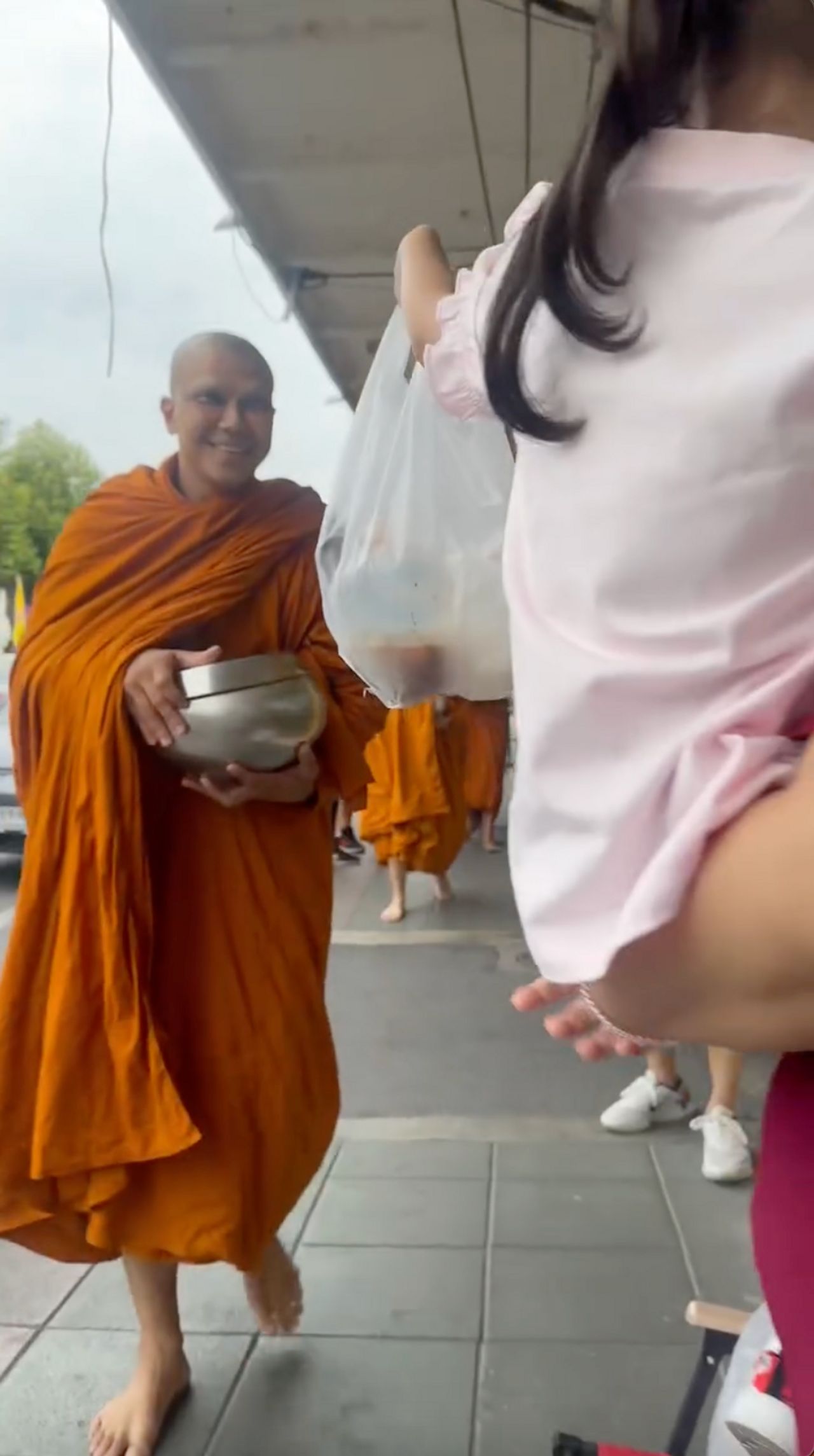 หลังจากที่ก่อนหน้านี้ แม่จูน เพ็ญชุลี ได้เผยคลิปลูกสาวไหว้พระหนุ่ม หลังจากที่โกนผมบวชไปเมื่อสัปดาห์ก่อน แต่ลูกสาวยังป่วยและรักษาตัวอยู่ที่โรงพยาบาล ซึ่งในคลิปนั้นแม่จูนบอกว่าจะพาลูกสาวไปใส่บาตรพระ ซึ่งสาวน้อยก็พร้อมจะไปใส่บาตร