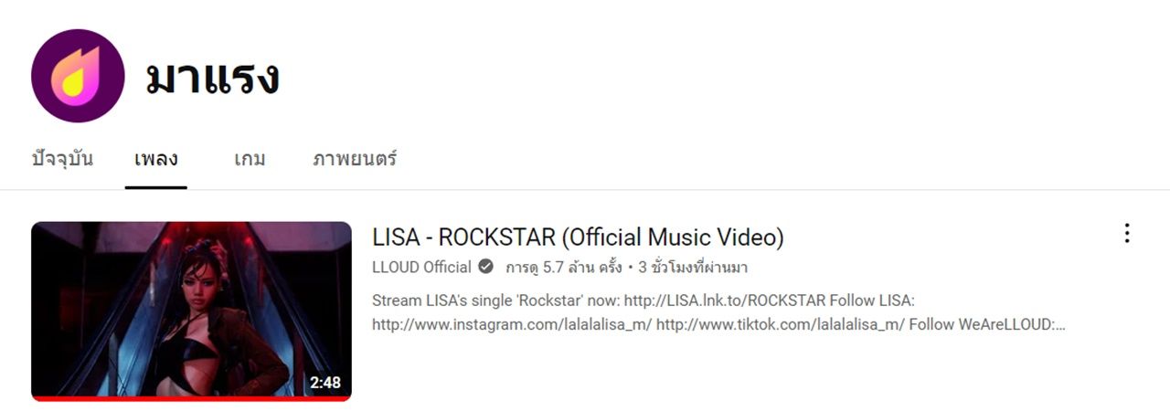เพิ่งปล่อย MV ออกมาเพียงไม่นาน สำหรับ ลิซ่า (LISA) ลลิษา มโนบาล หรือ ลิซ่า BLACKPINK กับเพลงใหม่ประเดิมค่าย LLOUD ซึ่งเป็นค่ายเพลงของ ลิซ่า ในเพลง "ROCKSTAR" และตอนนี้ยอดวิวก็พุ่งทะยานเข้าสู่หลักล้าน ในเวลาเพียงไม่กี่ชั่วโมง และติดอันดับ 1 ใน เพลงมาแรง #1 ของยูทูบ ไปเป็นที่เรียบร้อยแล้ว