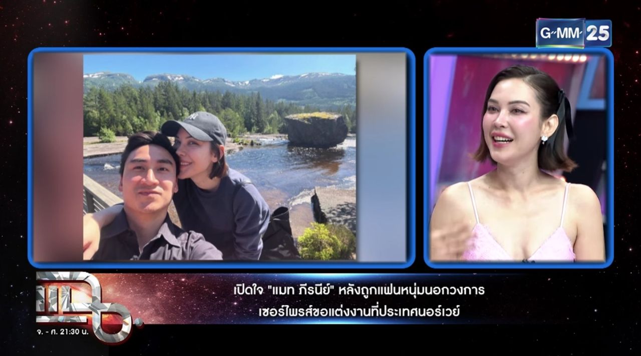 ฝ่ามรสุมข่าวฉาวมาเกือบทั้งชีวิต ล่าสุดฟ้าหลังฝน นางเอกสาวสวย แมท ภีรนีย์ ถูกแฟนหนุ่มนอกวงการอย่าง เฟม ภีมเดช ศิวพรพิทักษ์ ทำเซอร์ไพรส์ขอแต่งงานไปเป็นที่เรียบร้อยแล้ว ล่าสุดเมื่อวาน (8 กรกฎาคม 2567) เธอออกมาเปิดใจในรายการแฉ ถึงโมเมนต์ในตอนนั้นว่ารู้สึกตื่นเต้นมาก